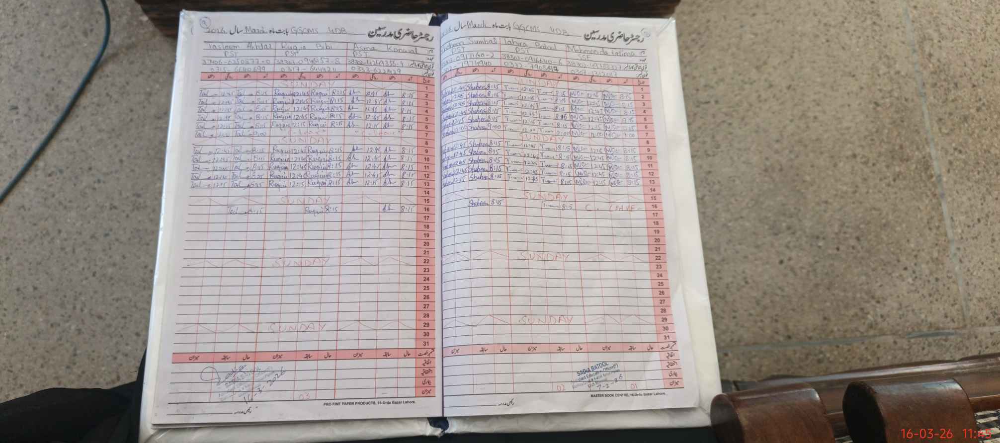 | CNIC | Full Name | Designation | R/C | Absence During Last Calender Month |