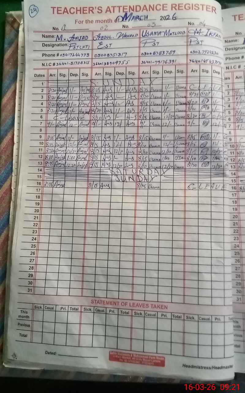 | Name: MU**** AM**** Designation: (School Headmaster's/Headmistress's) PST Phone/Cell Number: 03**** |