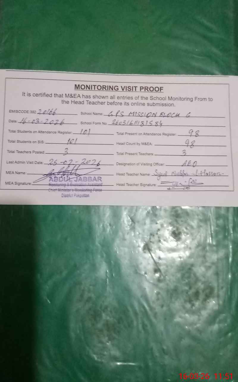 | EMIS Code: 39220166 | Name of School: GPS MISSION BLOCK G | |||