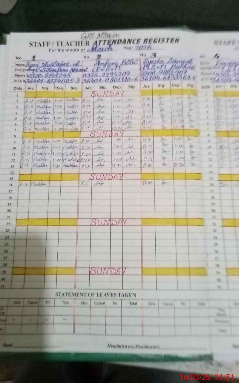 | Name: SY**** MU**** ULHA**** Designation: (School Headmaster's/Headmistress's) PST Phone/Cell Number: 03**** |