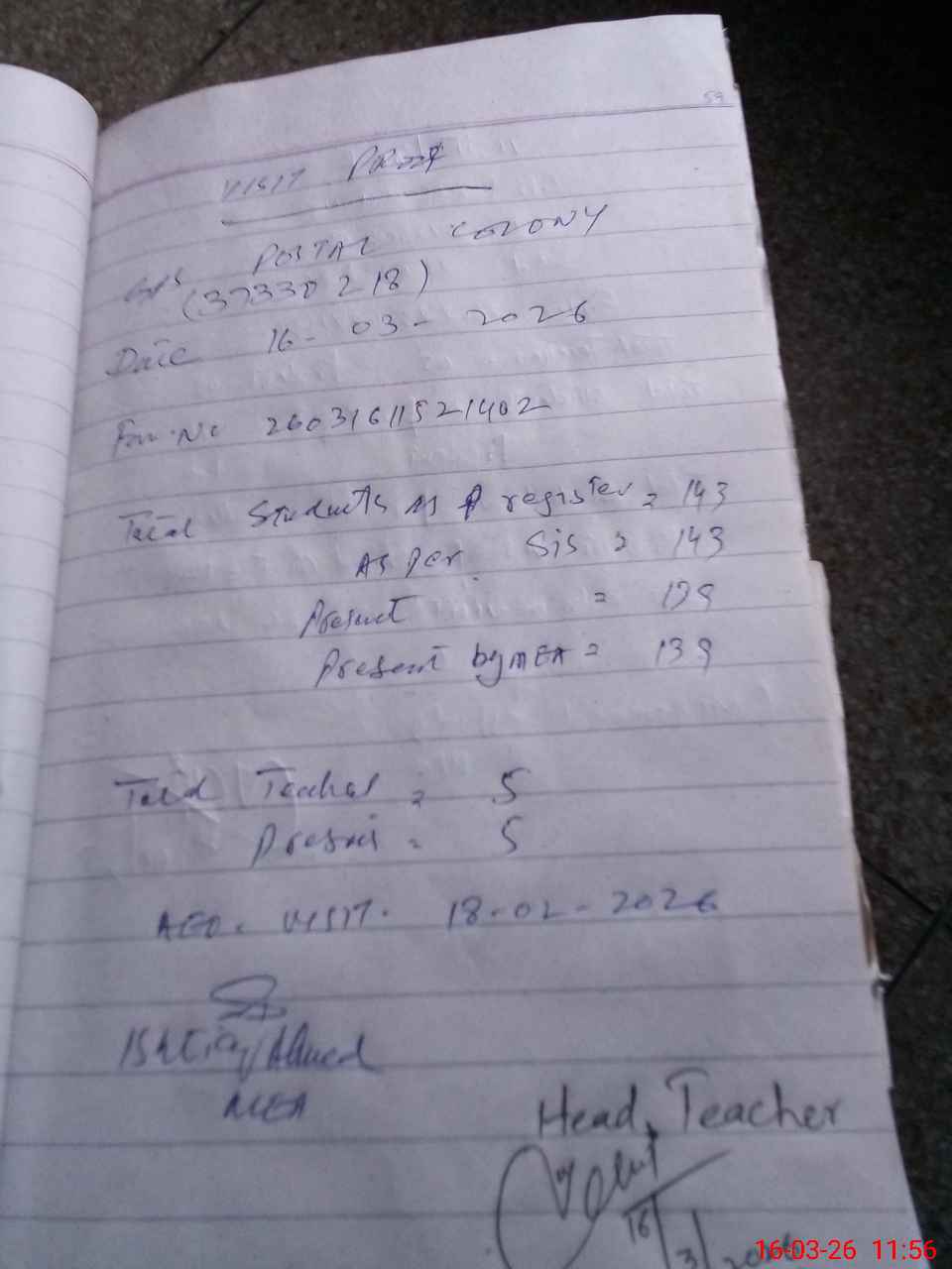 | Attendance Register | Head Teacher | MEA with School | Visit Proof |