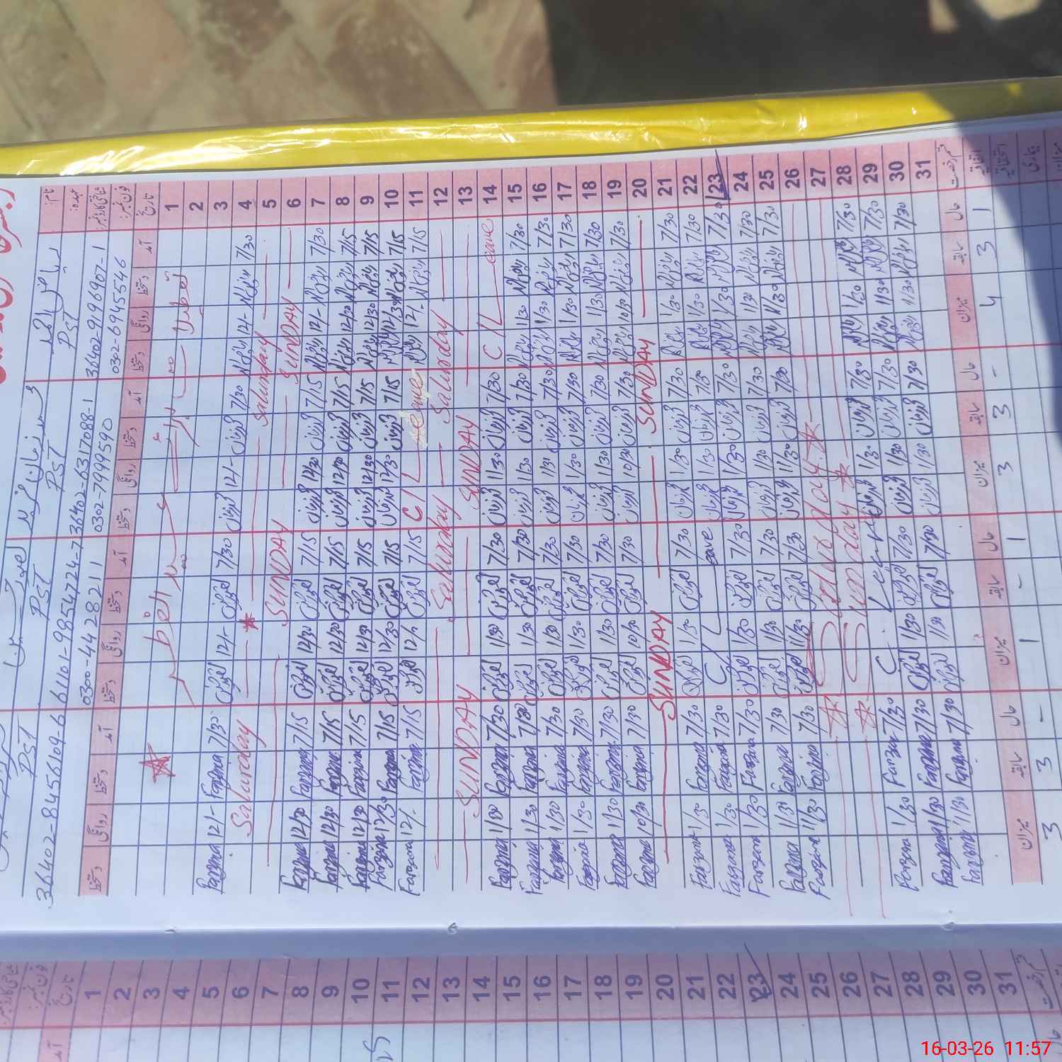 | CNIC | Full Name | Designation | R/C | Absence During Last Calender Month |