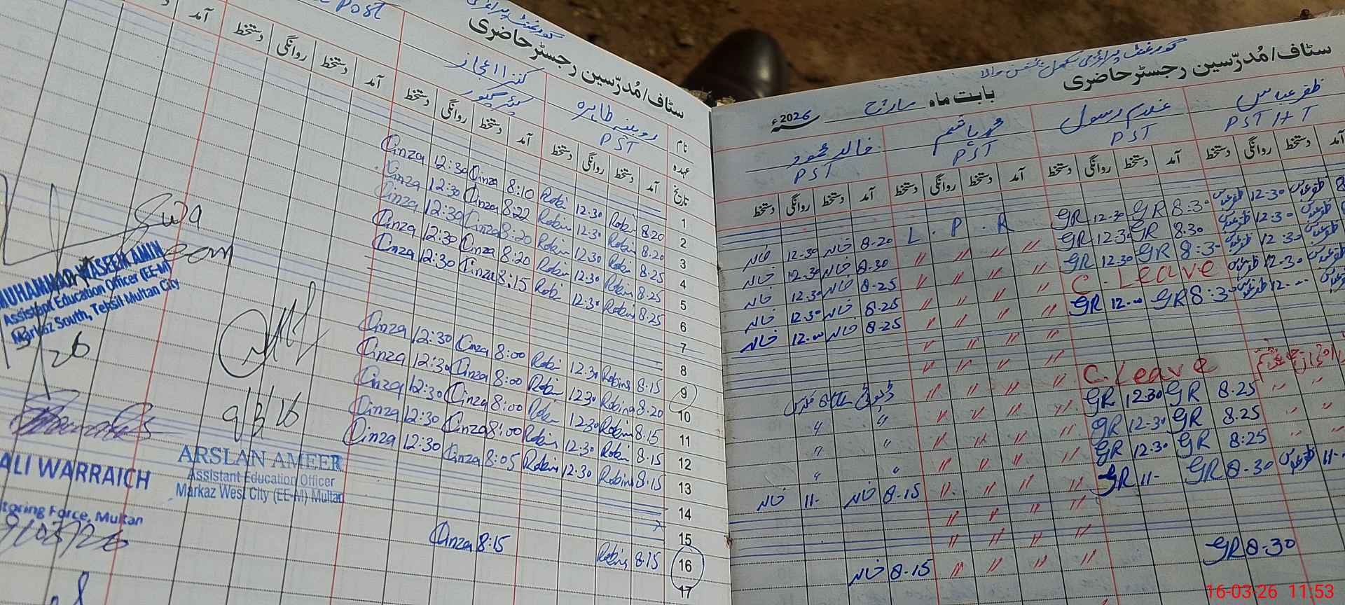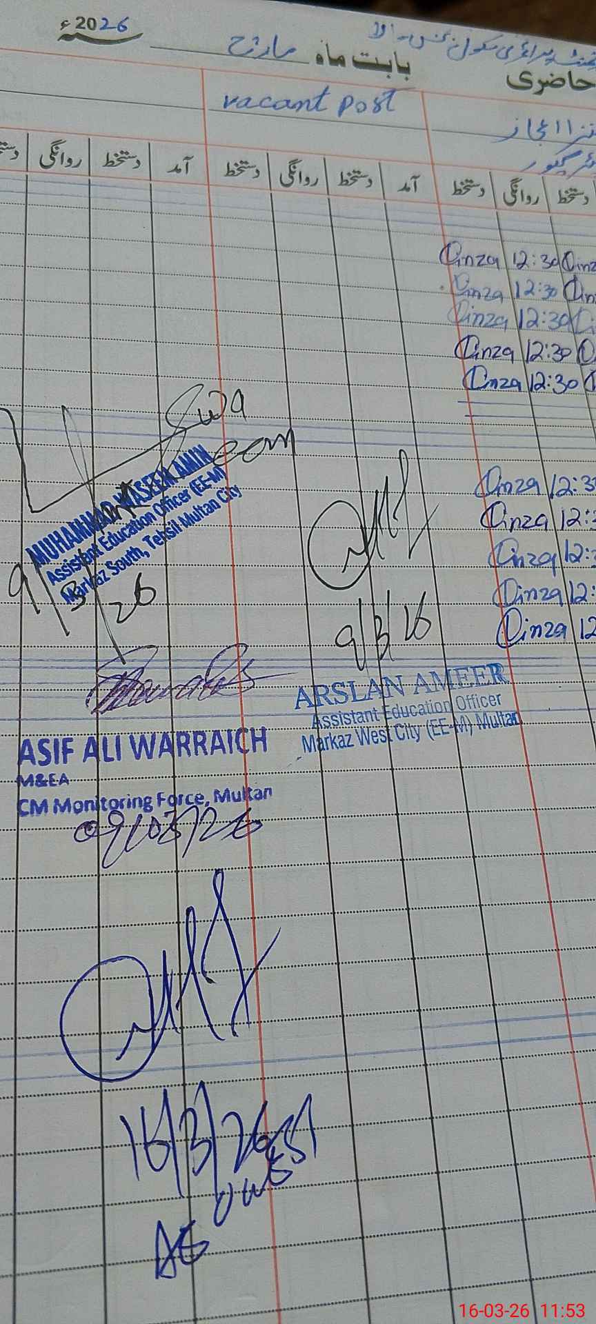 | CNIC | Full Name | Designation | R/C | Absence During Last Calender Month |