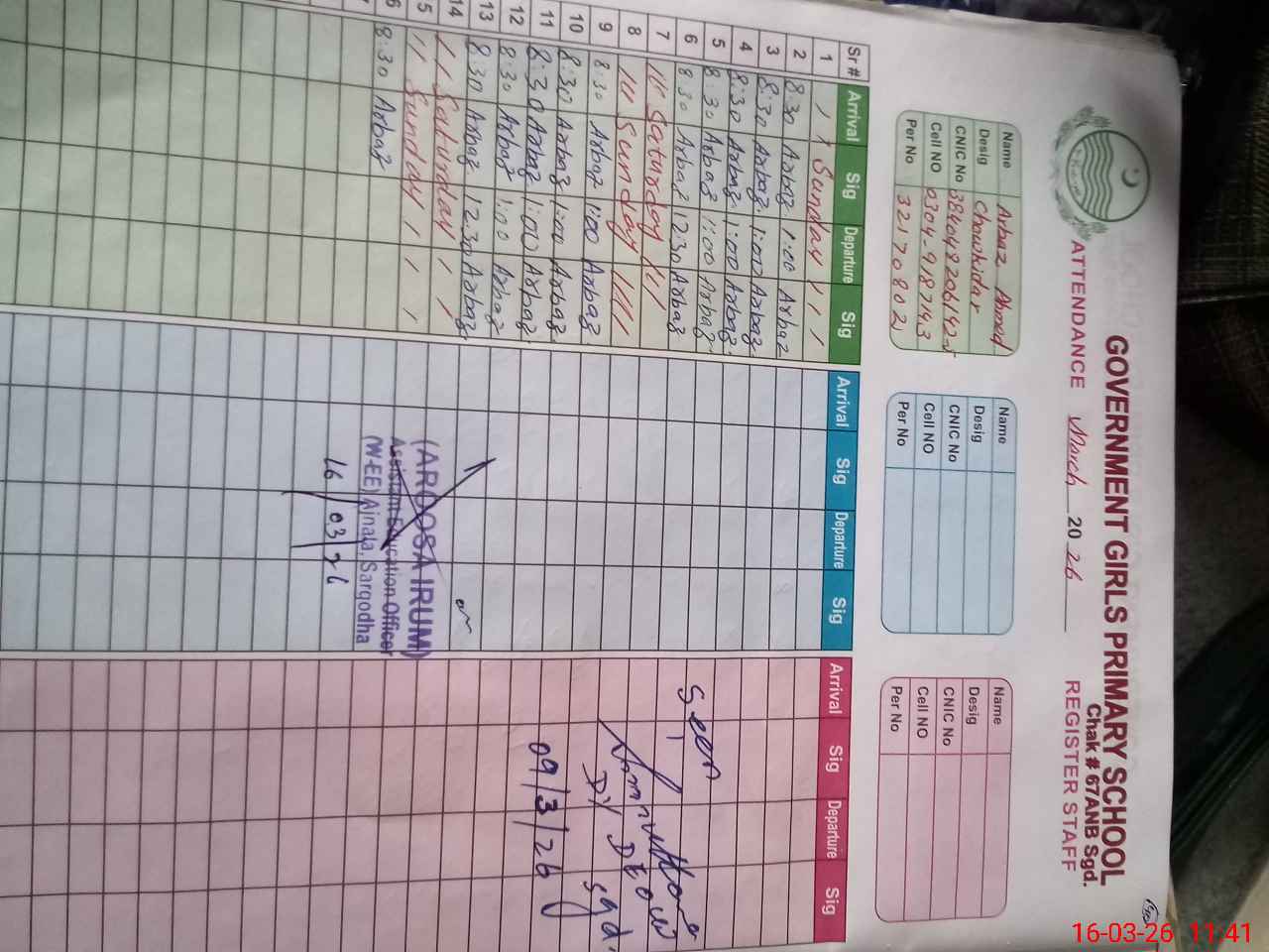 | District: SARGODHA | Tehsil: SARGODHA | Markaz: MARI - FEMALE | Level: Primary | |