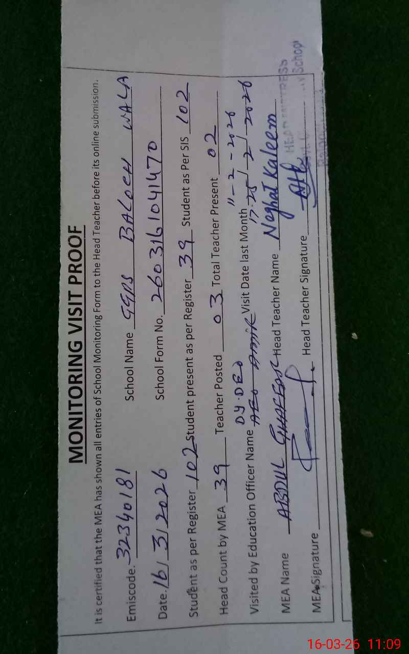 | EMIS Code: 32340181 | Name of School: GGPS BALOCH WALA | |||