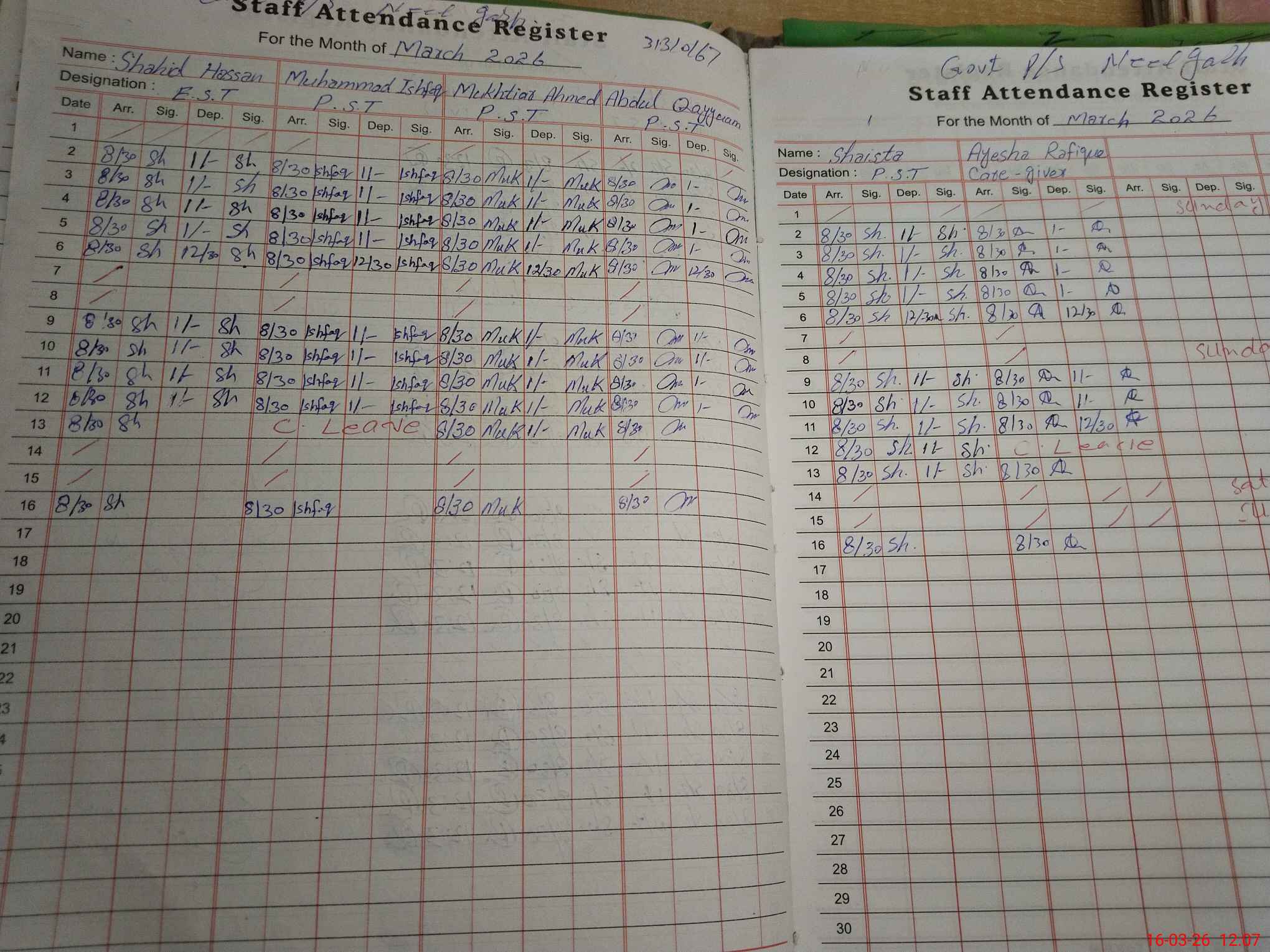 | CNIC | Full Name | Designation | R/C | Absence During Last Calender Month |