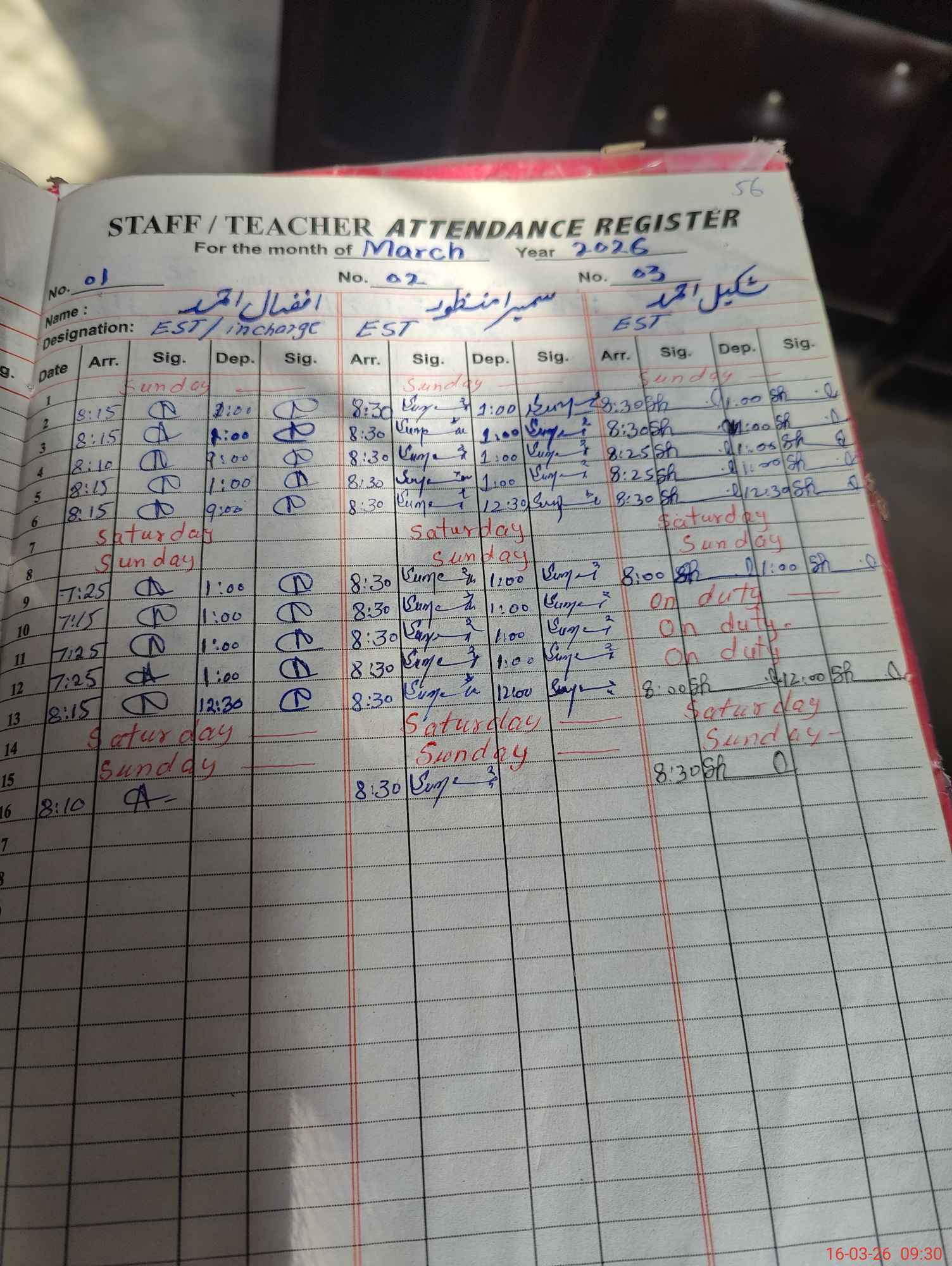 | Name: Af**** Ah**** Designation: (School Headmaster's/Headmistress's) EST Phone/Cell Number: 03**** |
