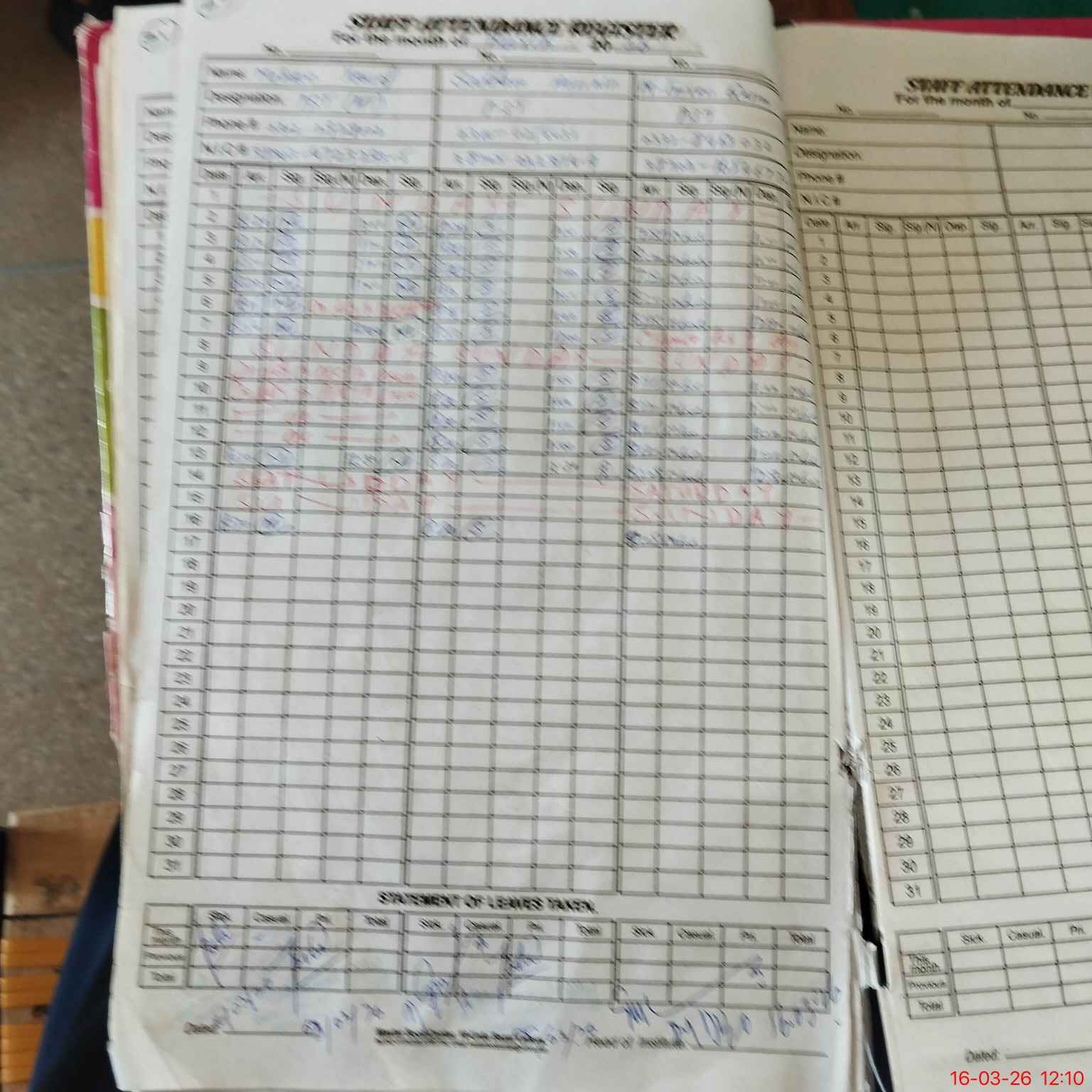 | Leave | Duty | Absent | Maternity | Medical | Ex- Pak |