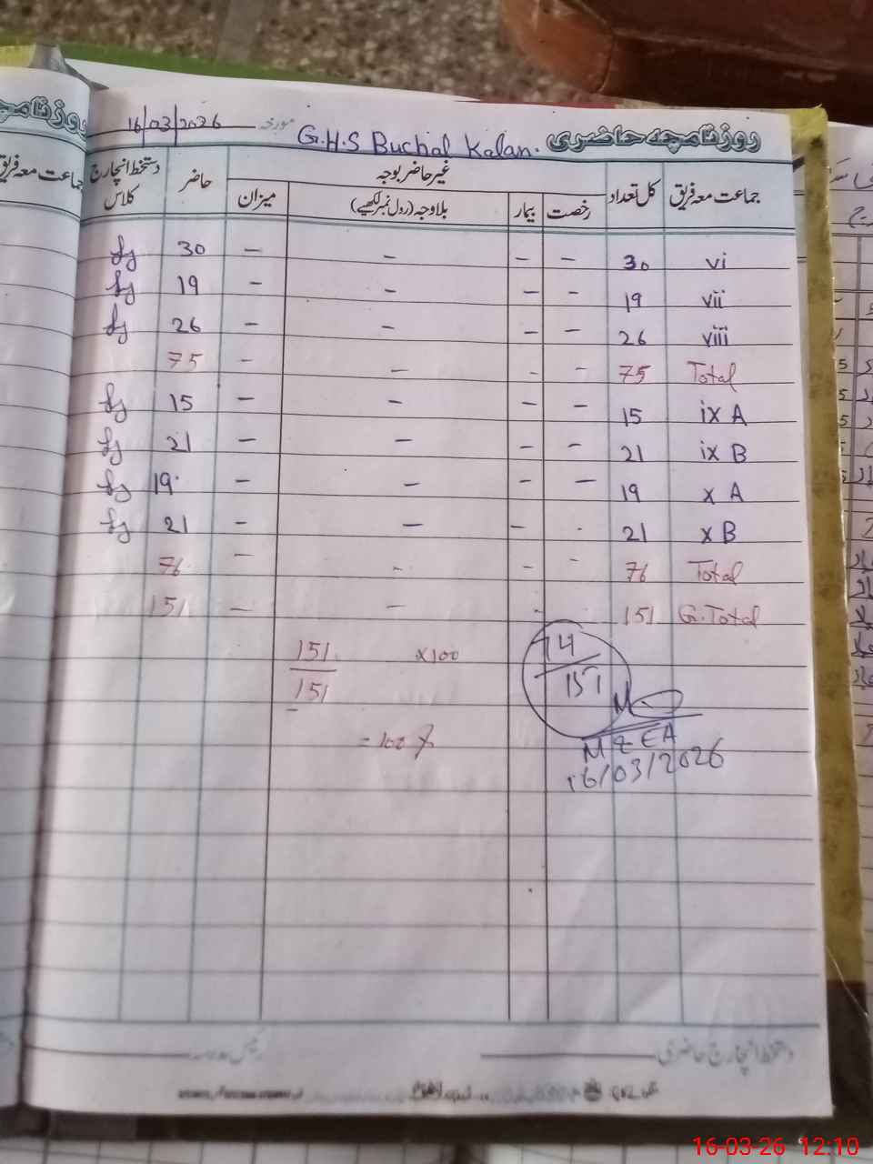 | Remarks (Use Separate Page if Required): 9th and 10th classes not available in school due to no paper . | |||||
