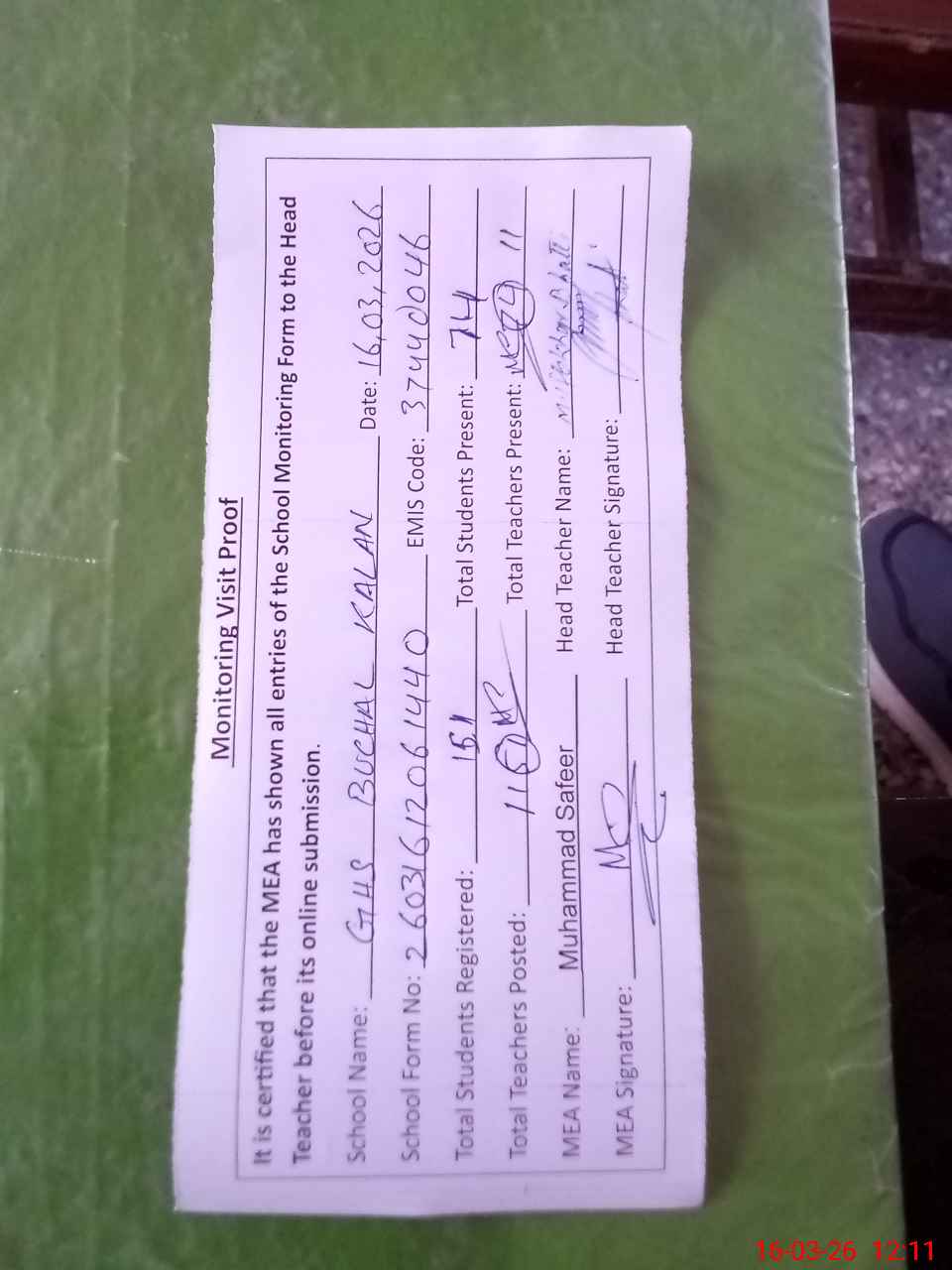 | EMIS Code: 37440046 | Name of School: GHS BUCHAL KALAN | |||
