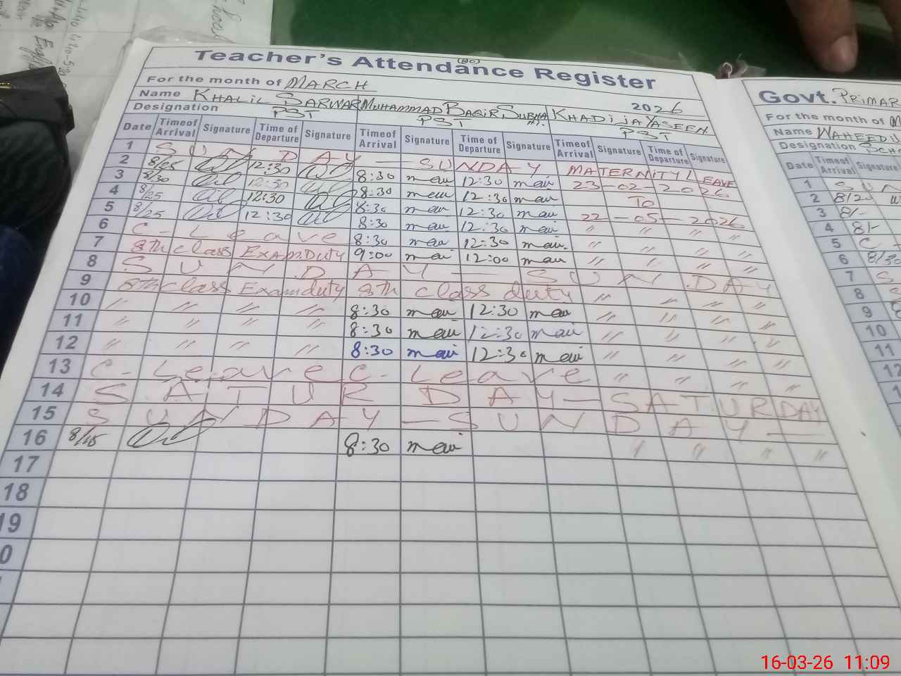 | Leave | Duty | Absent | Maternity | Medical | Ex- Pak |