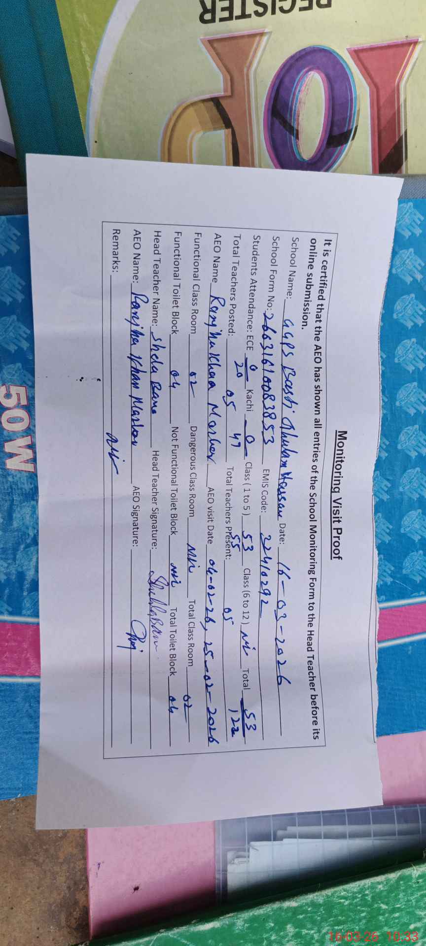 | EMIS Code: 32410292 | Name of School: GGPS BASTI GHULAM HASSAN | |||