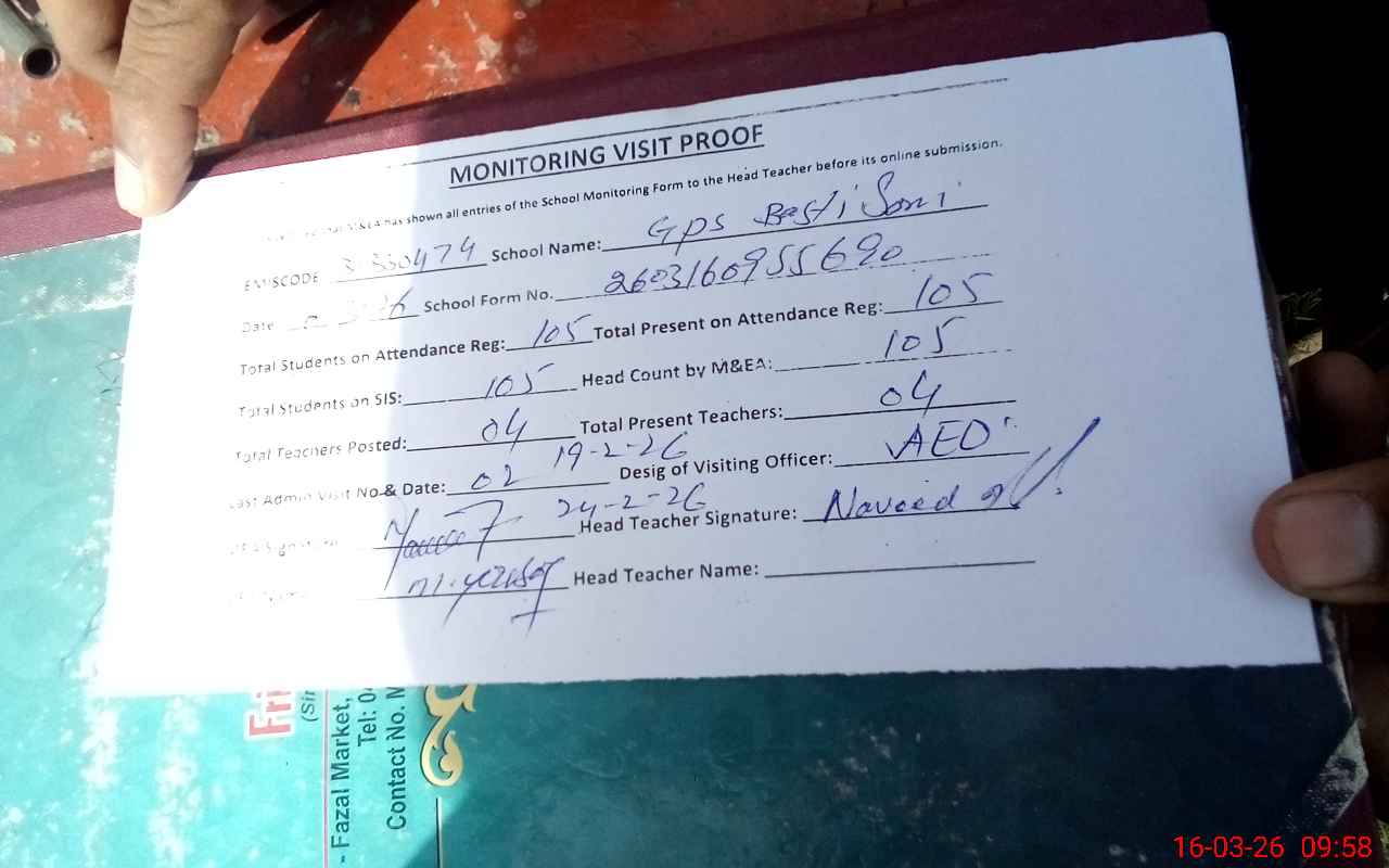 | EMIS Code: 31330474 | Name of School: GPS SONI | |||