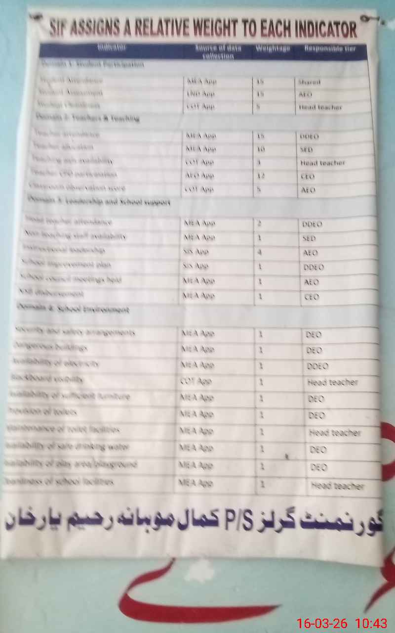 | District: RAHIMYAR KHAN | Tehsil: RAHIMYAR KHAN | Markaz: BULAQI WALI -FEMALE | Level: Primary | |