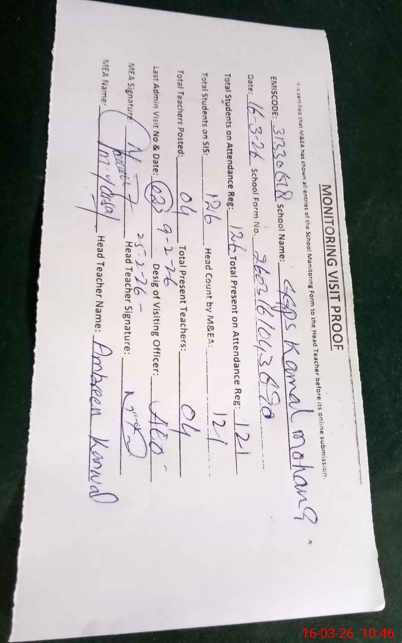 | EMIS Code: 31330618 | Name of School: GGPS KAMAL MOHANA RYK | |||