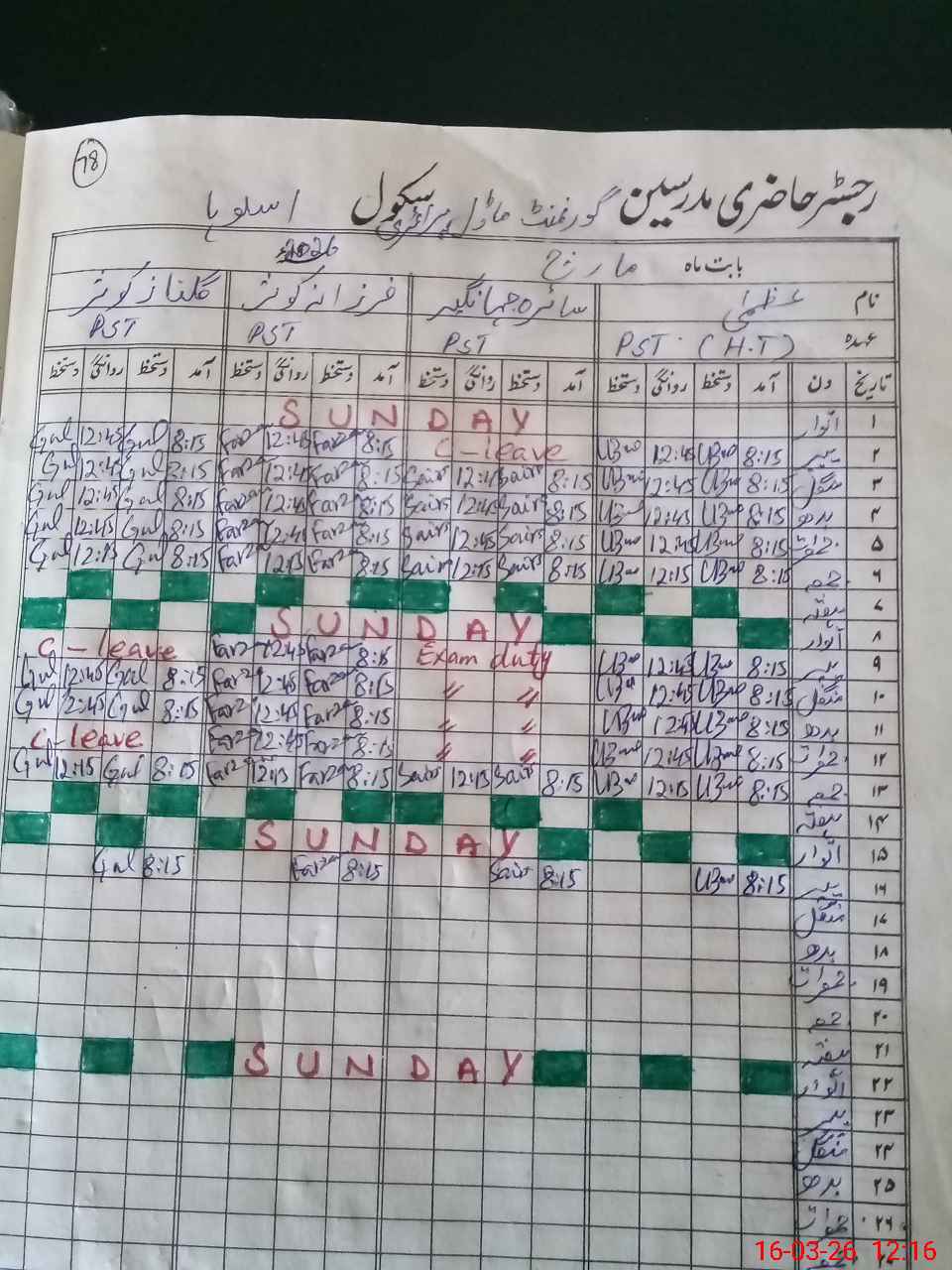 | Leave | Duty | Absent | Maternity | Medical | Ex- Pak |
