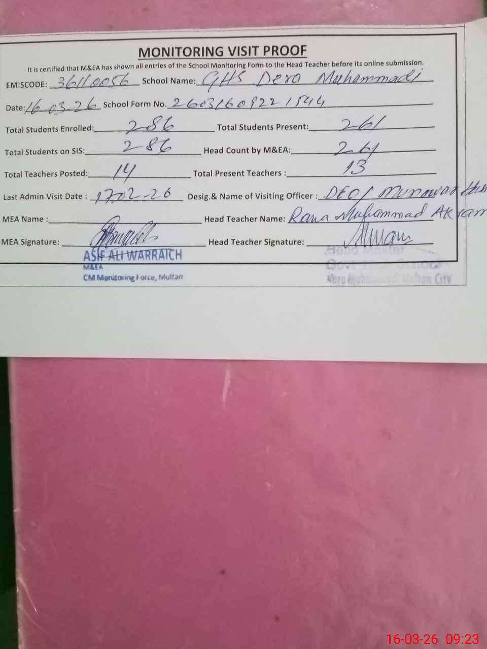 | EMIS Code: 36110056 | Name of School: GHS DERA MUHAMMDI BASTI RAM KALLI | |||
