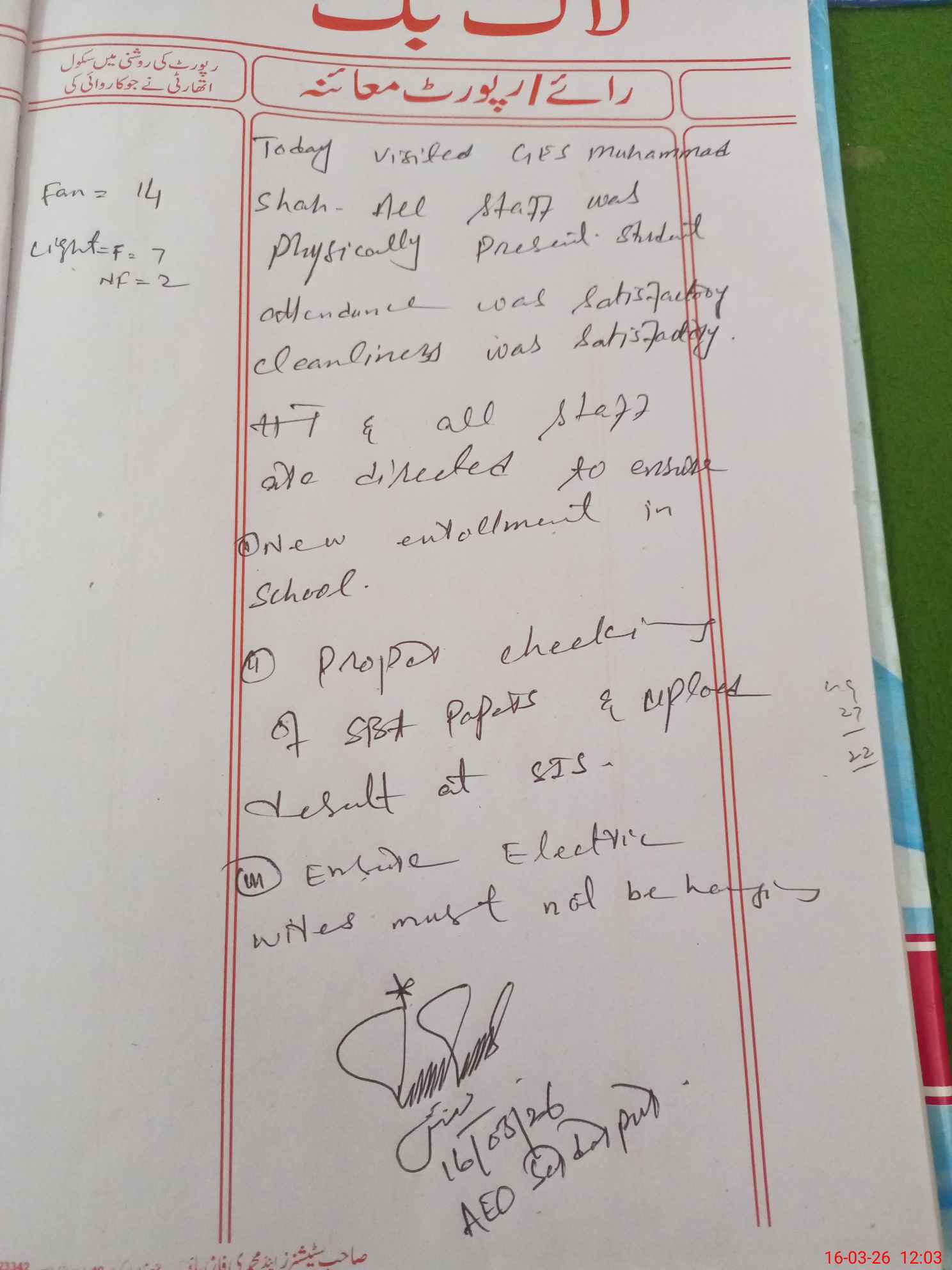 | Certified that this School was Inspected by the Undersigned MEA/DMO Today and the Information Stated Above is as Per Record. | |||||