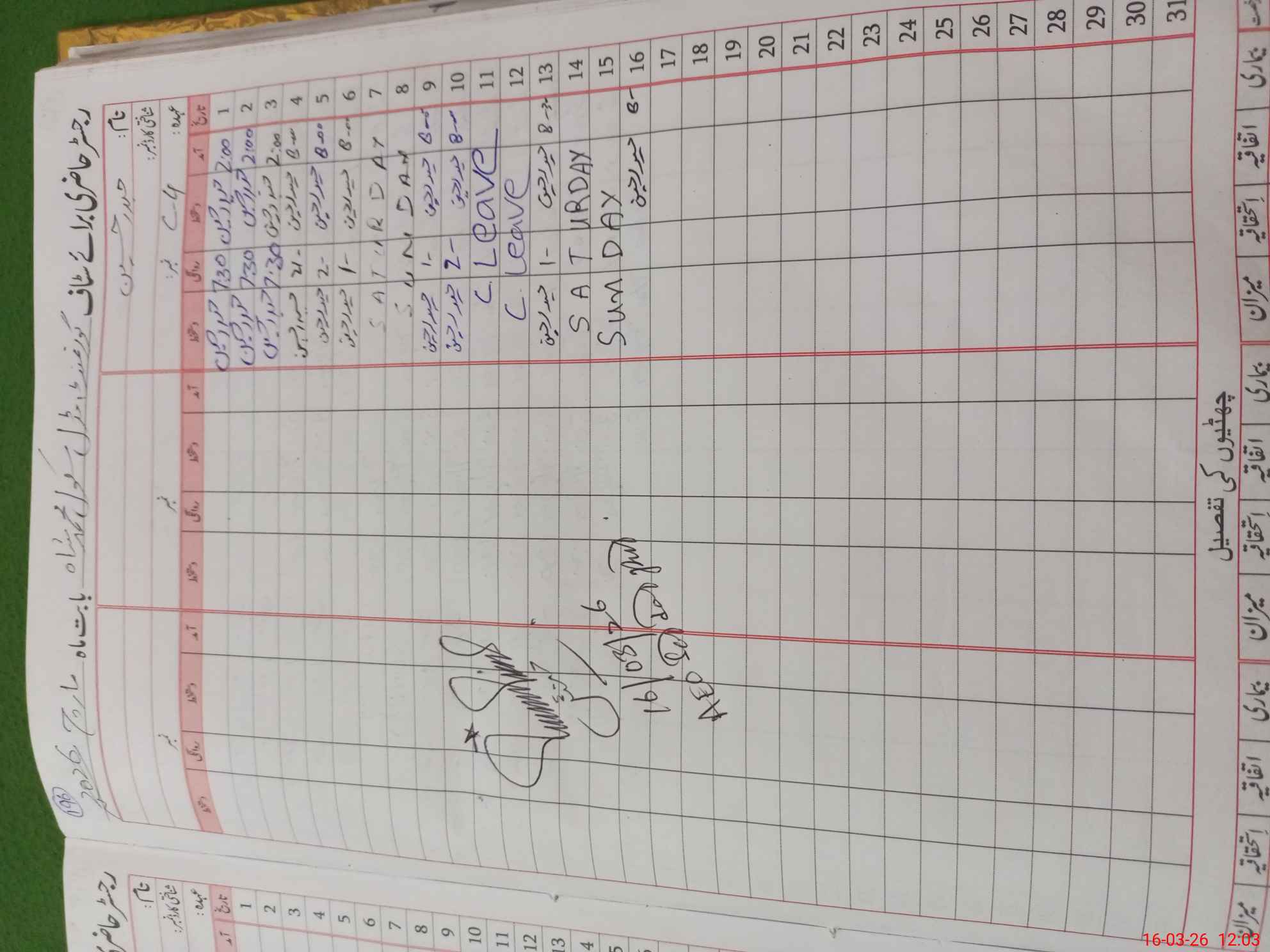 | CNIC | Full Name | Designation | R/C | Absence During Last Calender Month |