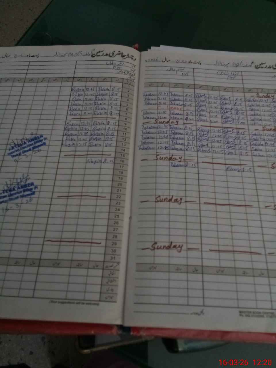 | CNIC | Full Name | Designation | R/C | Absence During Last Calender Month |