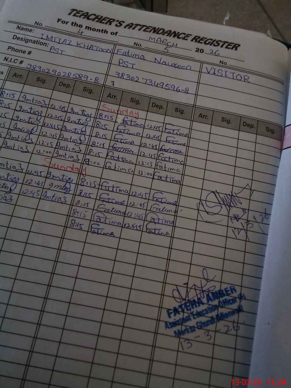 | Name: Si**** Ba**** Designation: (School Headmaster's/Headmistress's) PST Phone/Cell Number: 03**** |