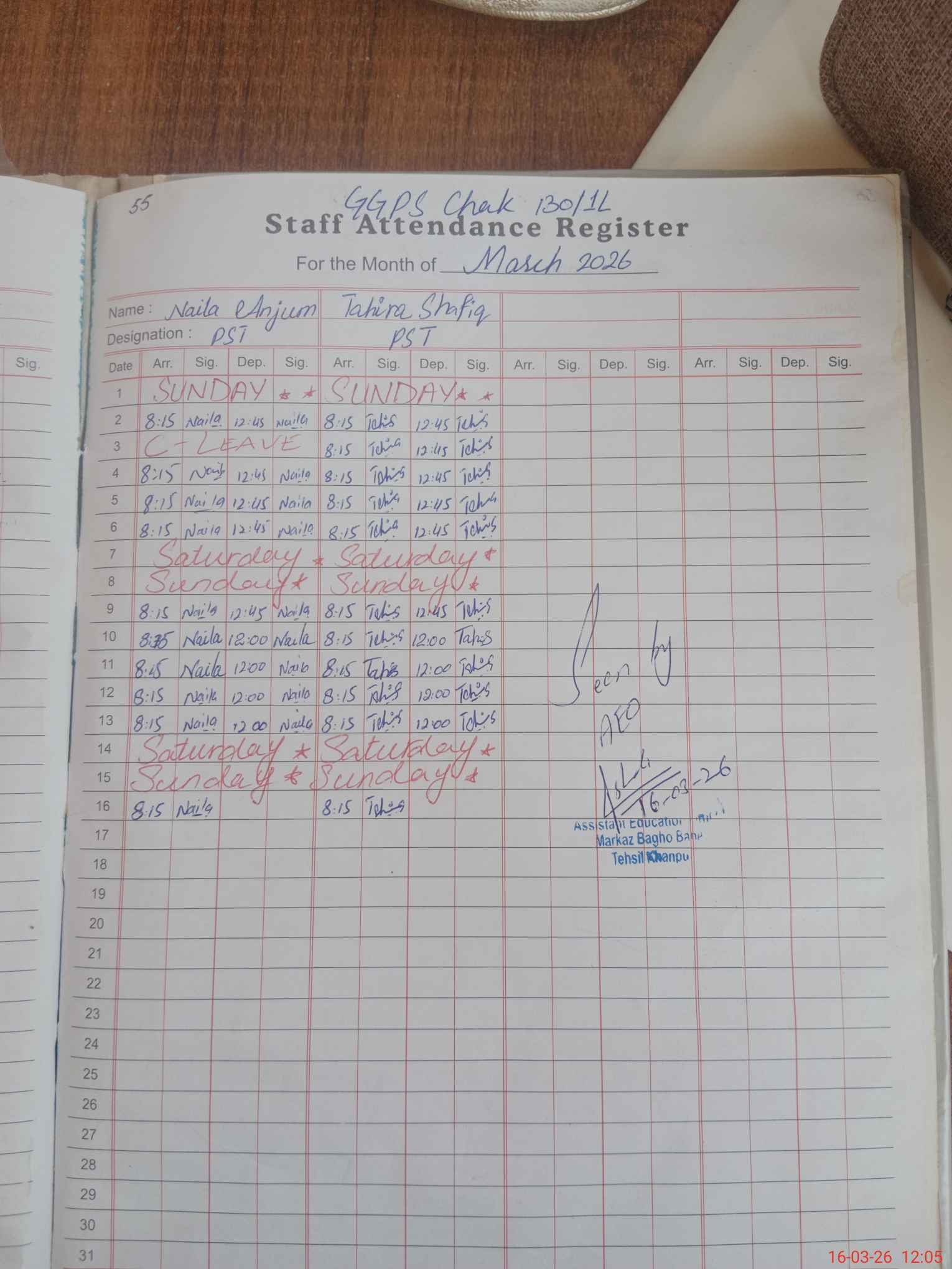| Name: Na**** An**** Designation: (School Headmaster's/Headmistress's) PST Phone/Cell Number: 03**** |