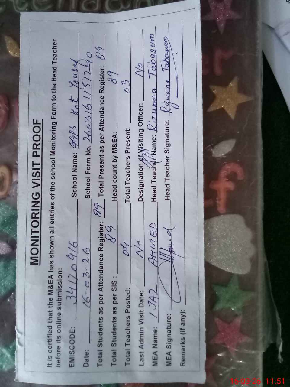 | EMIS Code: 34120416 | Name of School: GGPS KOT YOUSAF | |||