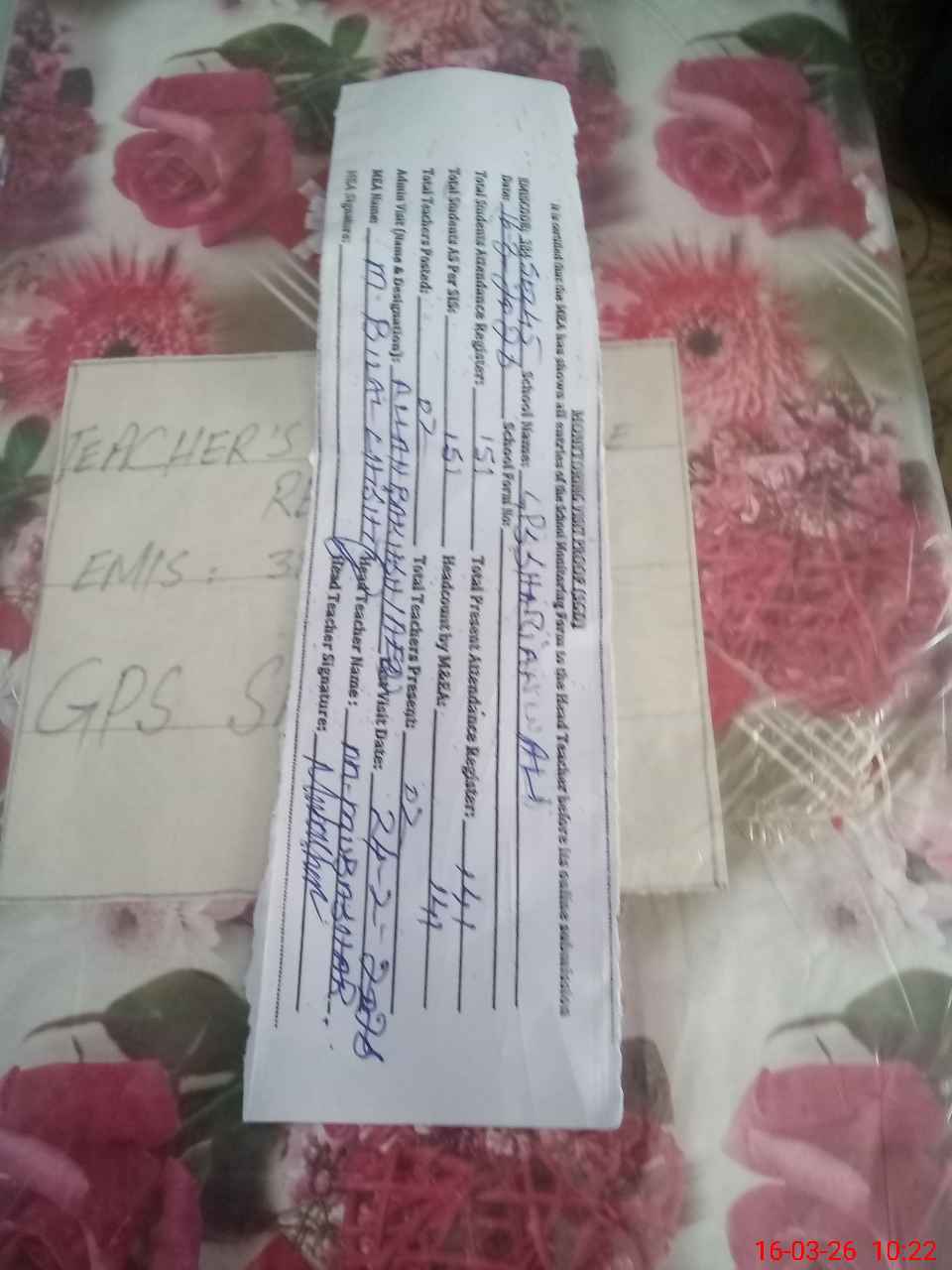 | EMIS Code: 38450245 | Name of School: GPS SHARIAN WALI | |||