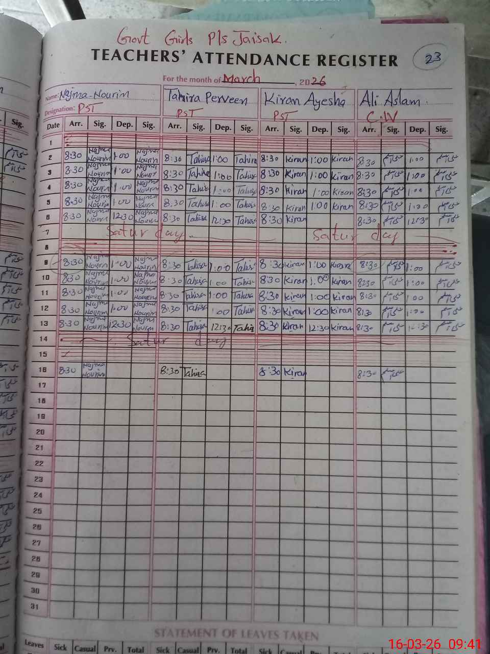 | Leave | Duty | Absent | Maternity | Medical | Ex- Pak |