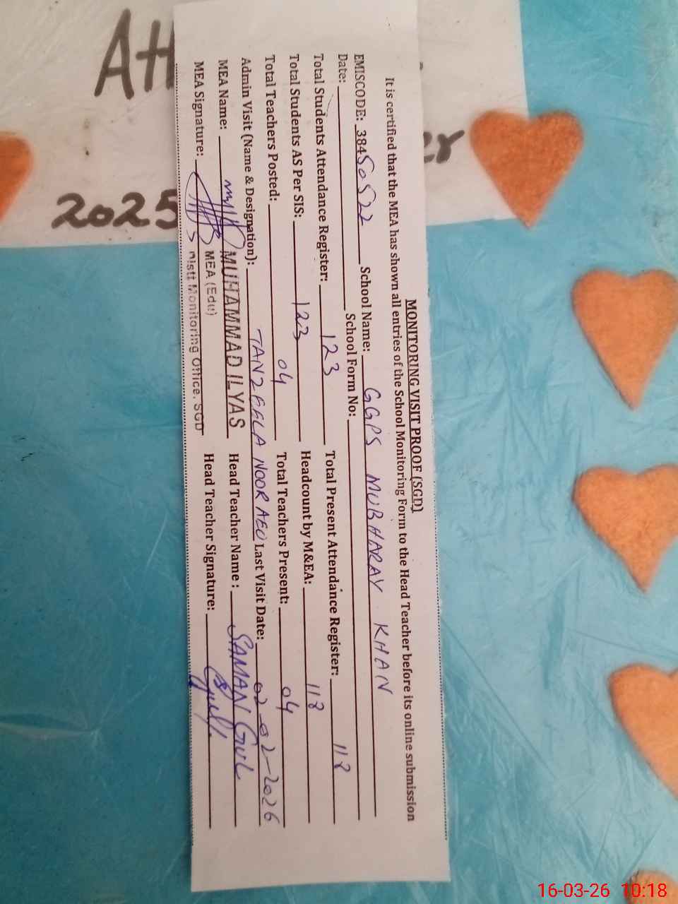 | EMIS Code: 38450522 | Name of School: GGPS MOBHARAY KHAN | |||