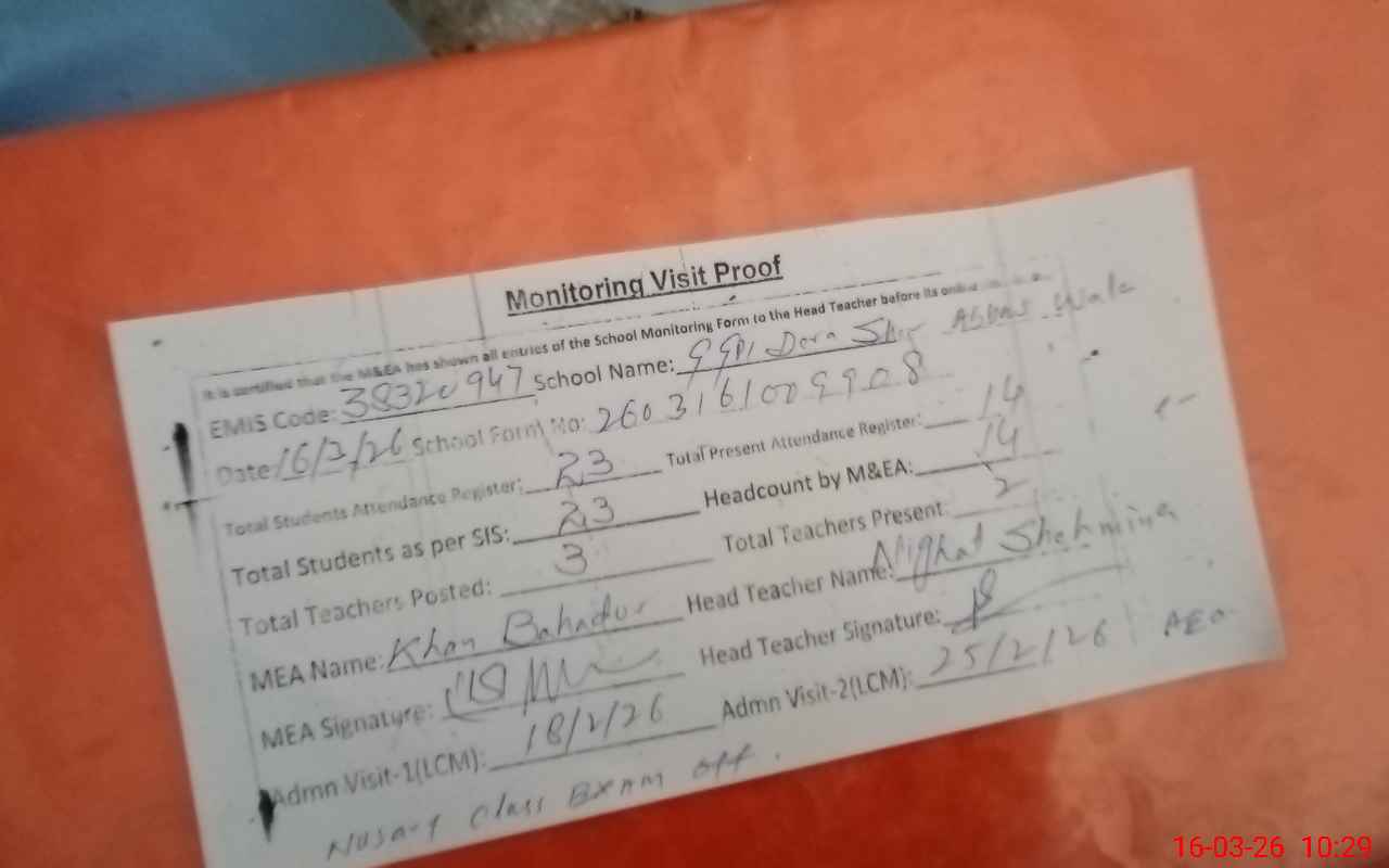 | EMIS Code: 38320947 | Name of School: GGPS DERA SHER ABBAS KHAN WALA | |||