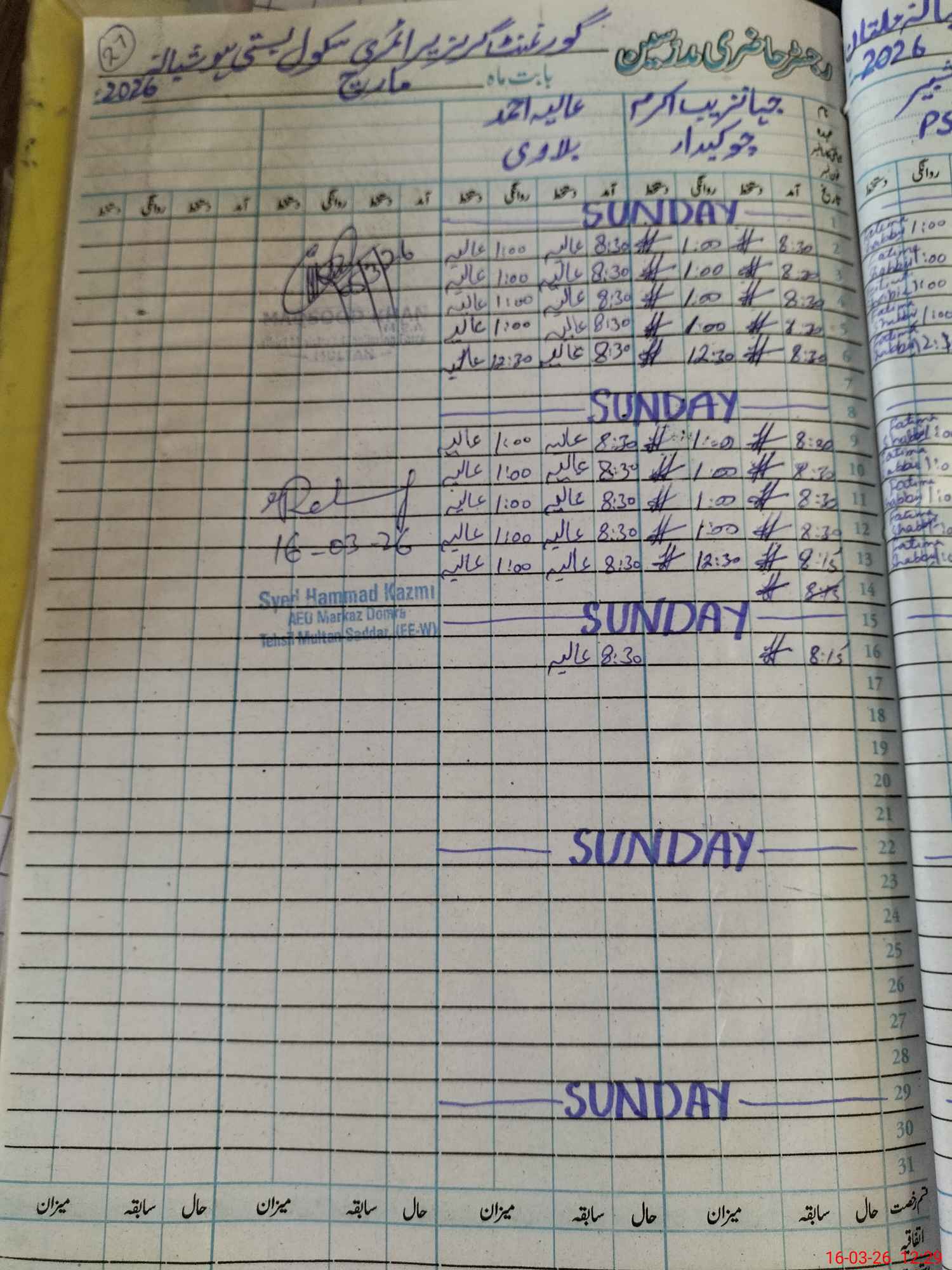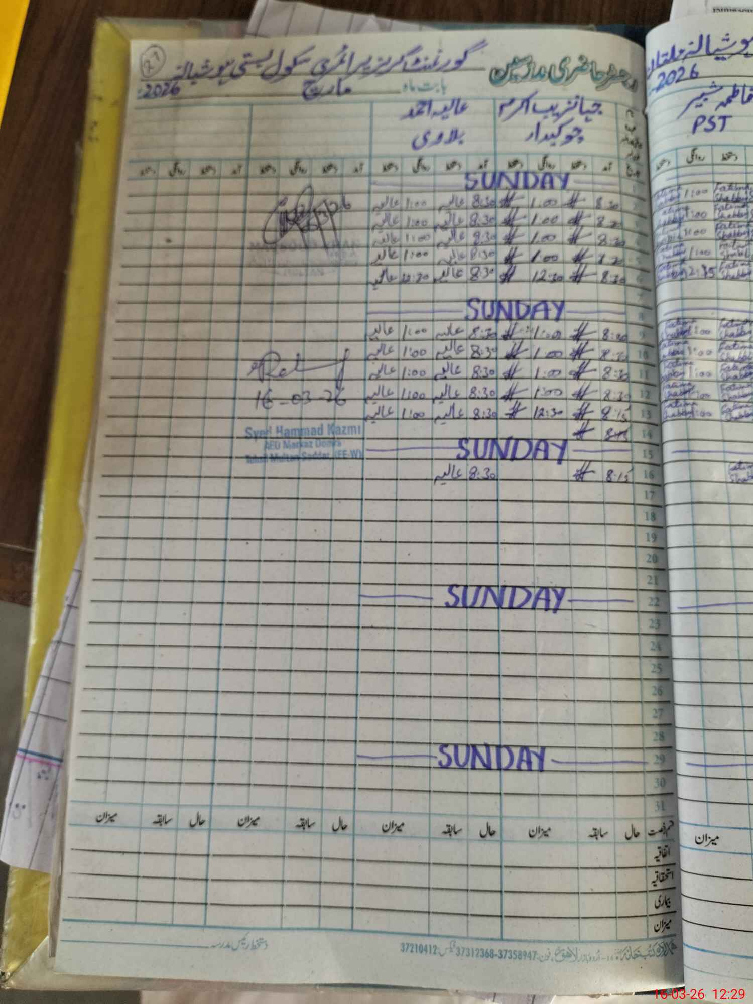 | CNIC | Full Name | Designation | R/C | Absence During Last Calender Month |