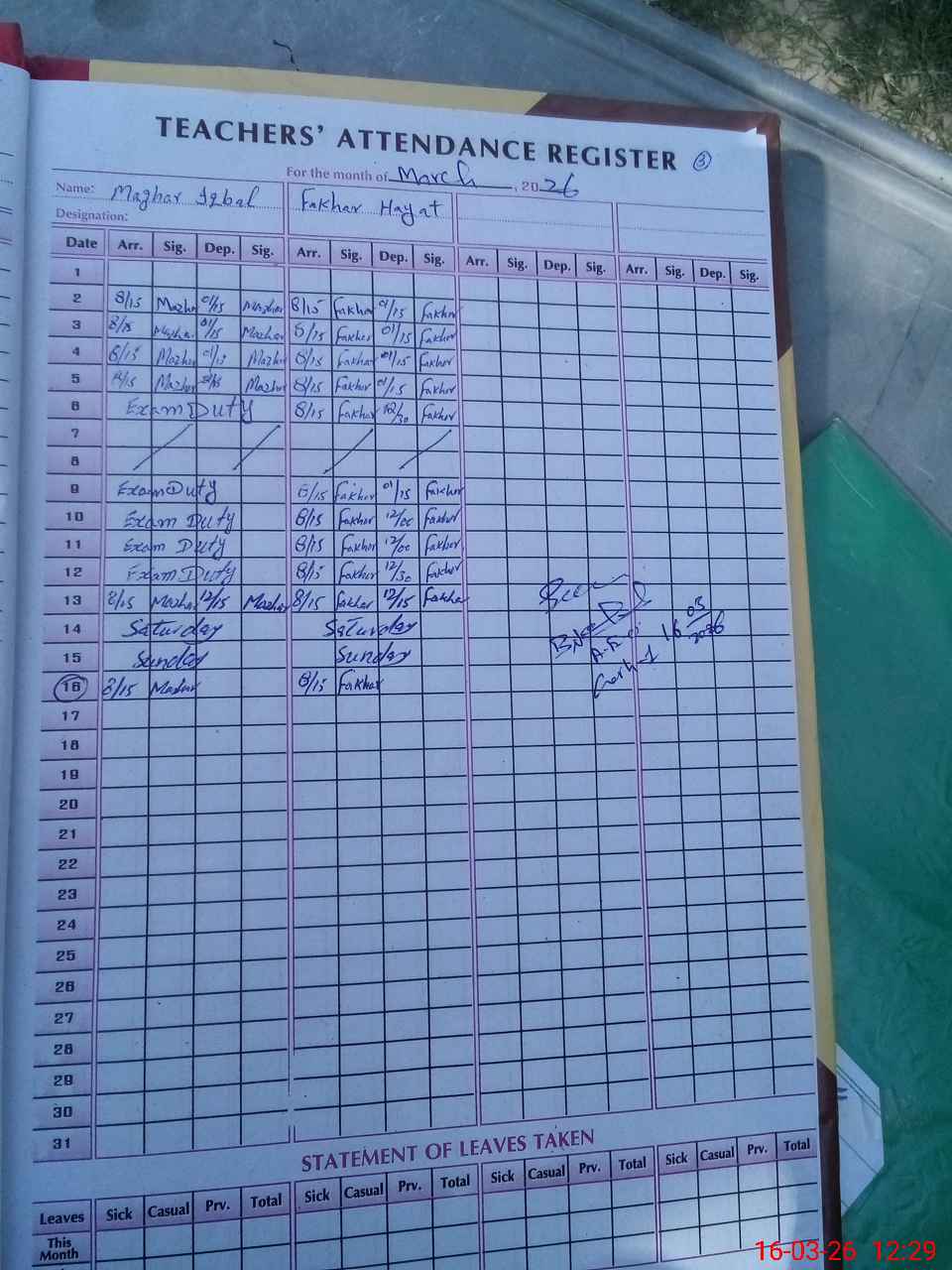| Name: MA**** IQ**** Designation: (School Headmaster's/Headmistress's) PST Phone/Cell Number: 03**** |