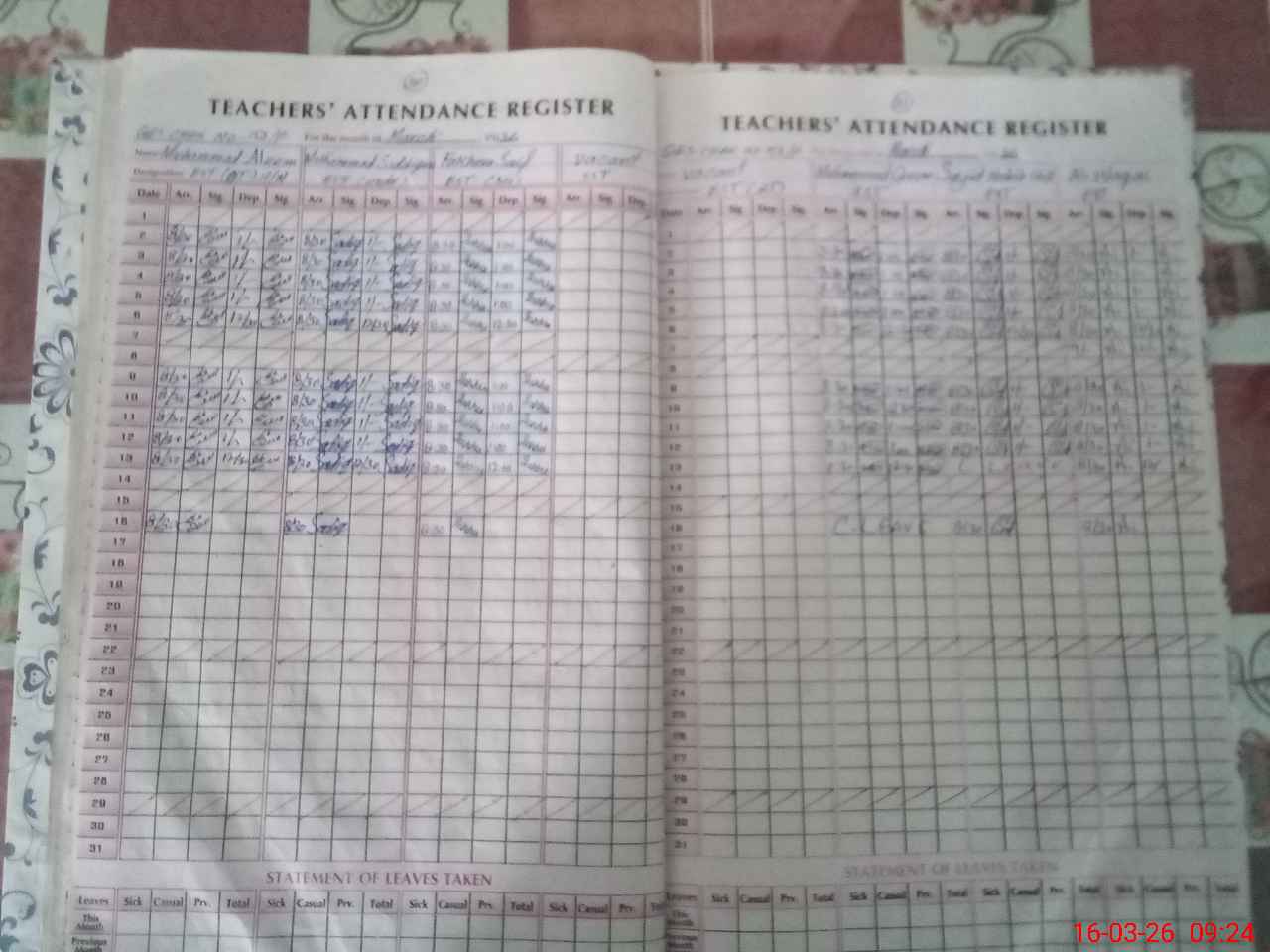 | Leave | Duty | Absent | Maternity | Medical | Ex- Pak |