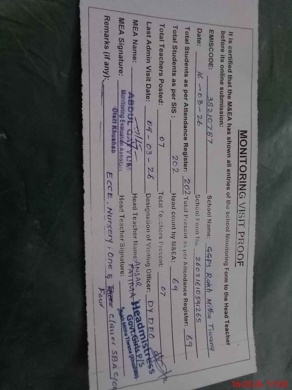 | EMIS Code: 38210787 | Name of School: GGPS RAKH MITHA TIWANA CANAL COLONY | |||