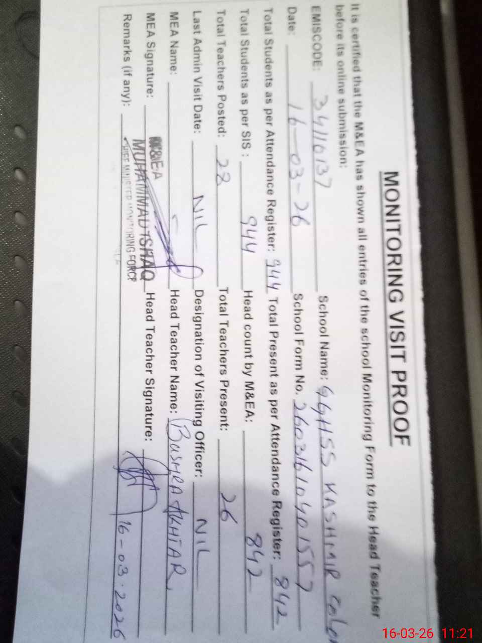 | Certified that this School was Inspected by the Undersigned MEA/DMO Today and the Information Stated Above is as Per Record. | |||||
