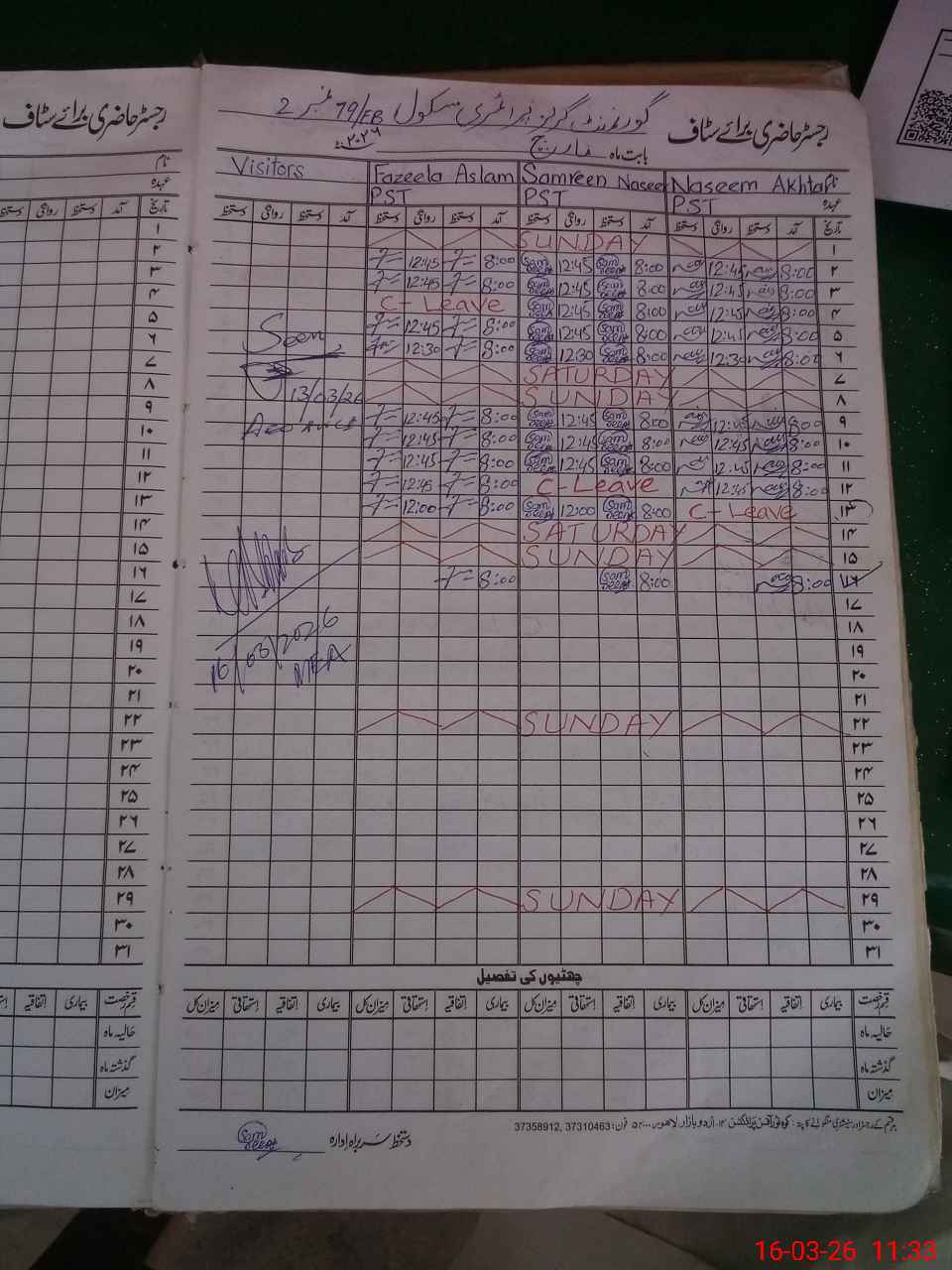 | Name: SA**** NA**** Designation: (School Headmaster's/Headmistress's) PST Phone/Cell Number: 03**** |