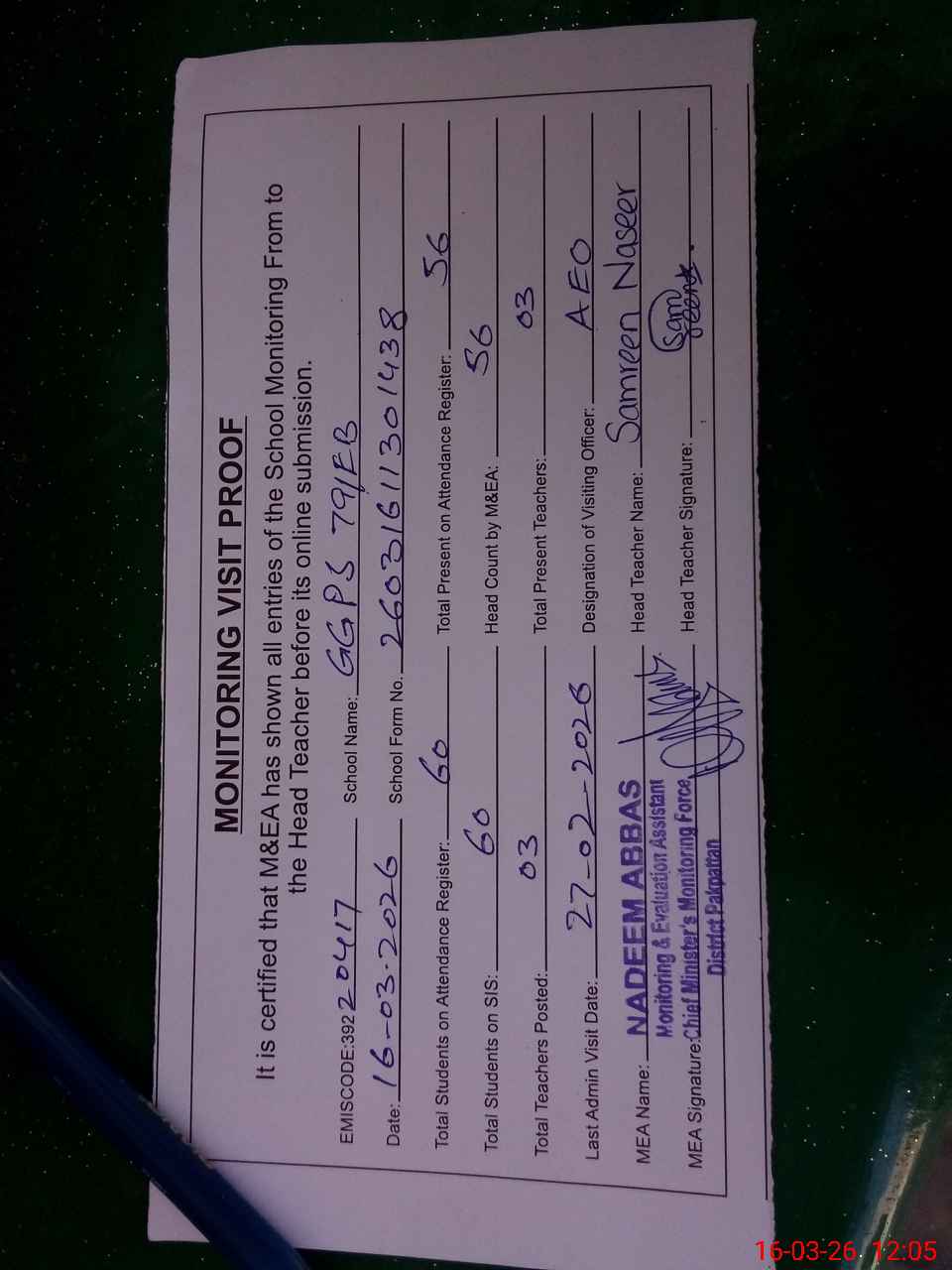 | EMIS Code: 39220417 | Name of School: GGPS 79 / EB NO.2 KORAN WALI BASTI P.O 69 EB | |||