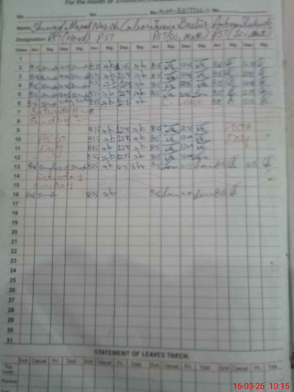 | Name: SH**** MA**** Designation: (School Headmaster's/Headmistress's) PST Phone/Cell Number: 03**** |