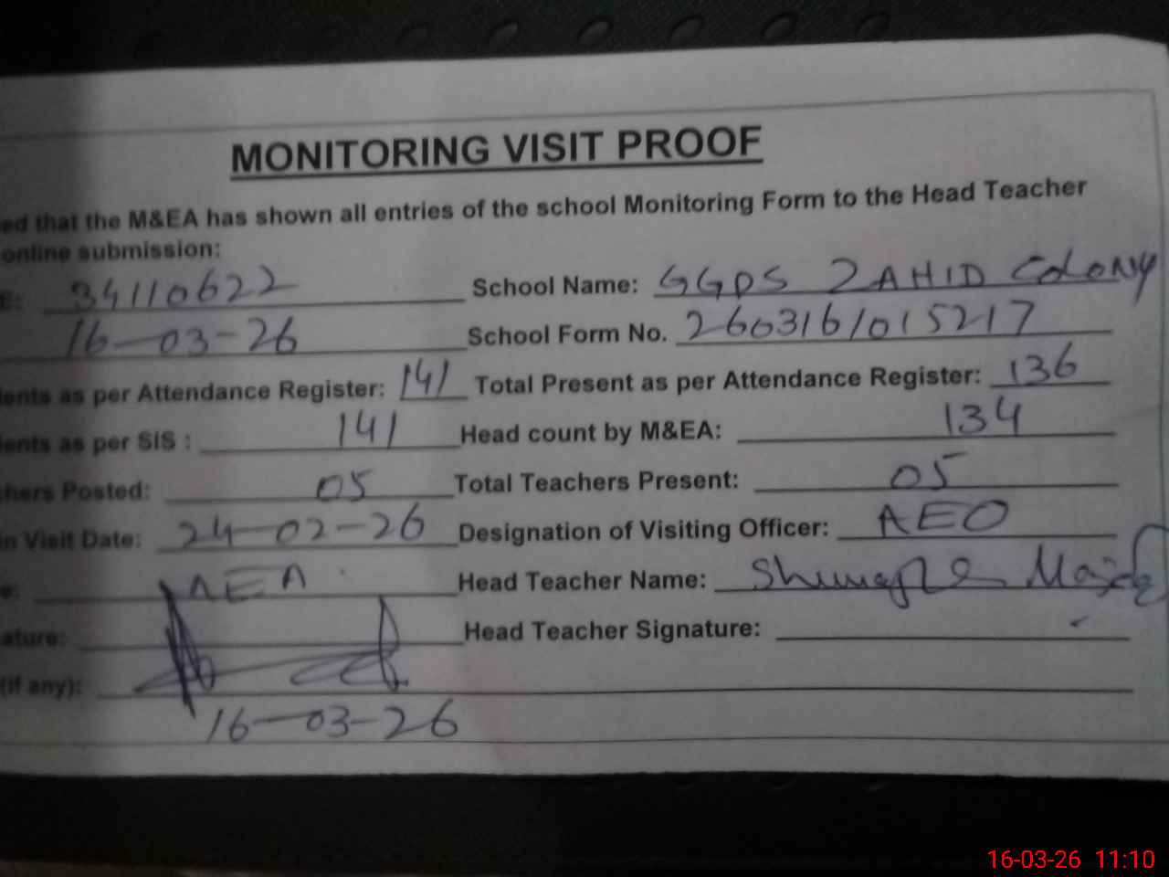 | EMIS Code: 34110622 | Name of School: GGPS ZAHID COLONY | |||