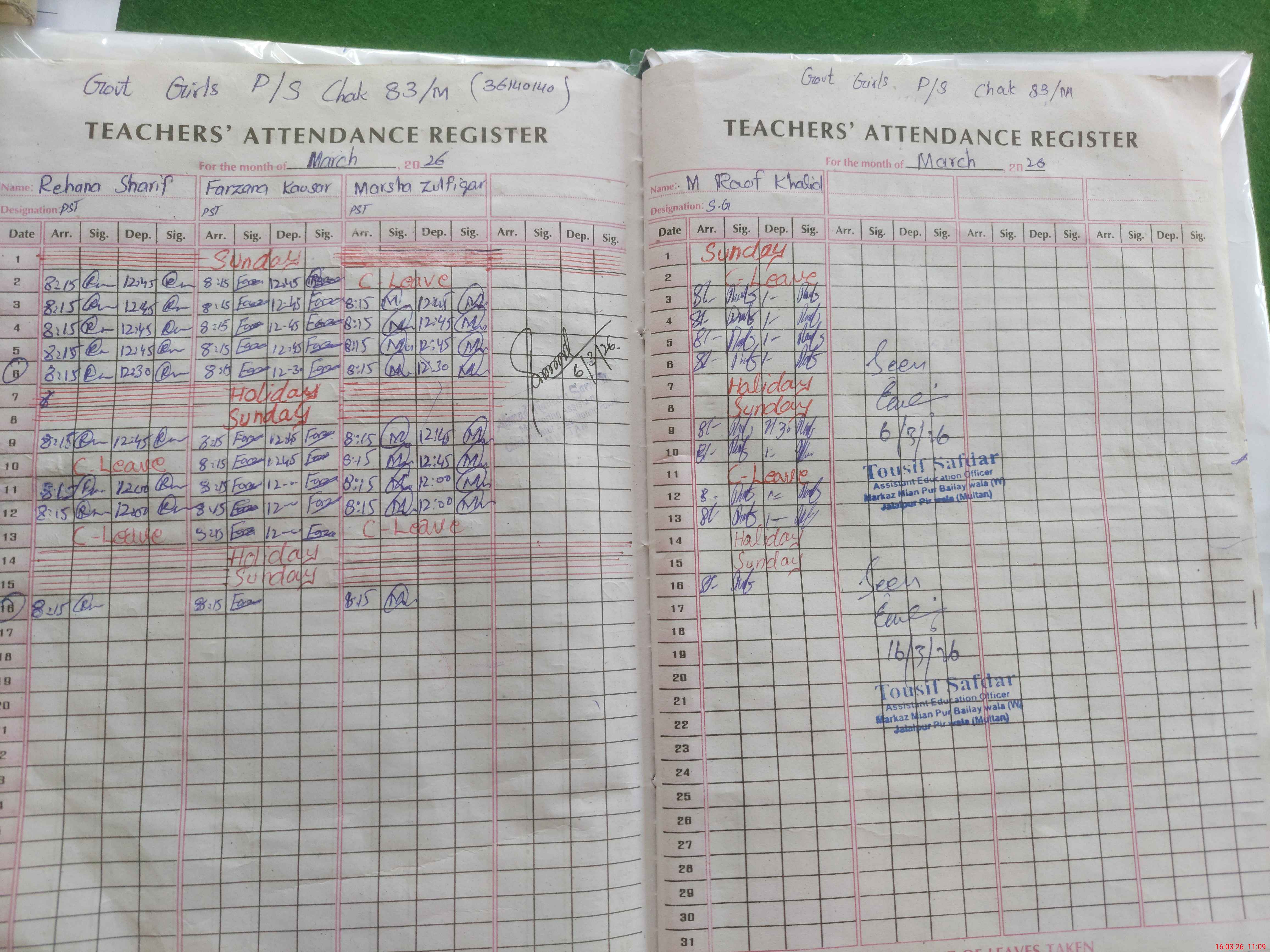 | District: MULTAN | Tehsil: JALALPUR PIRWALA | Markaz: MIAN PUR BELAY WALA - FEMALE | Level: Primary | |