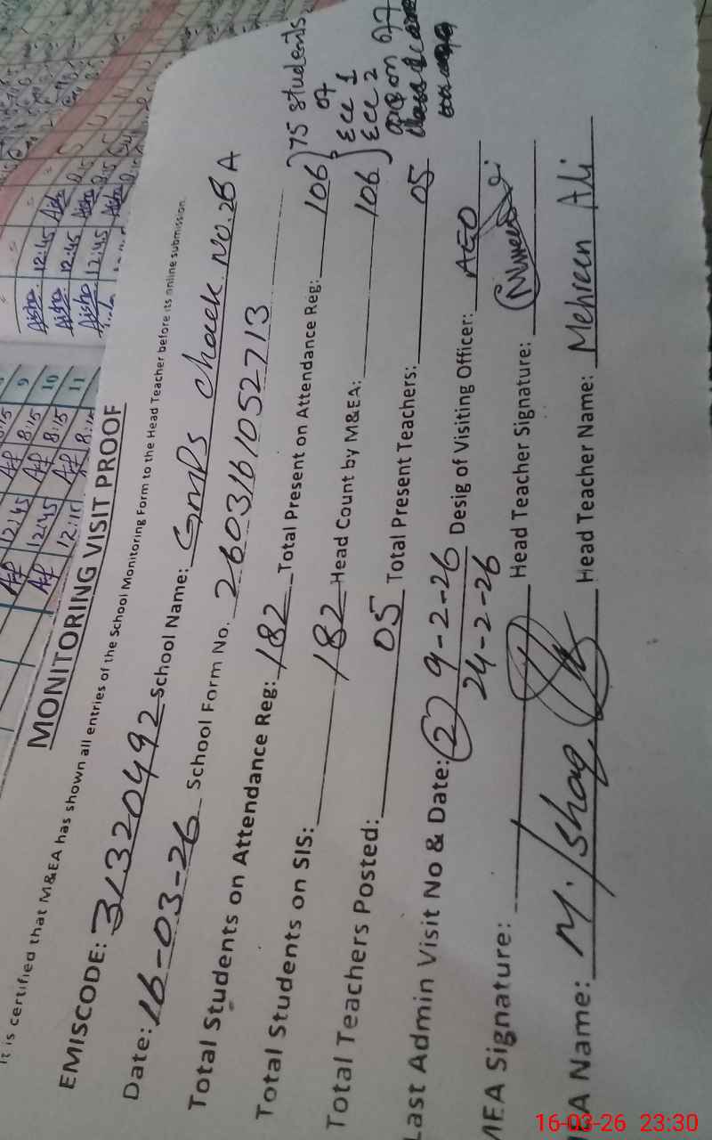 | EMIS Code: 31320492 | Name of School: GMPS CHAK NO.26/A | |||