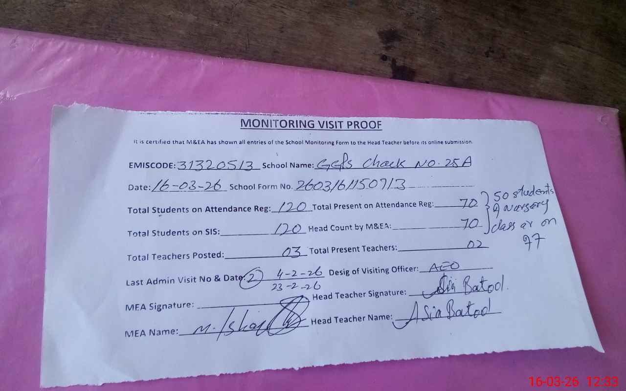 | EMIS Code: 31320513 | Name of School: GGPS CHAK NO.25/A | |||