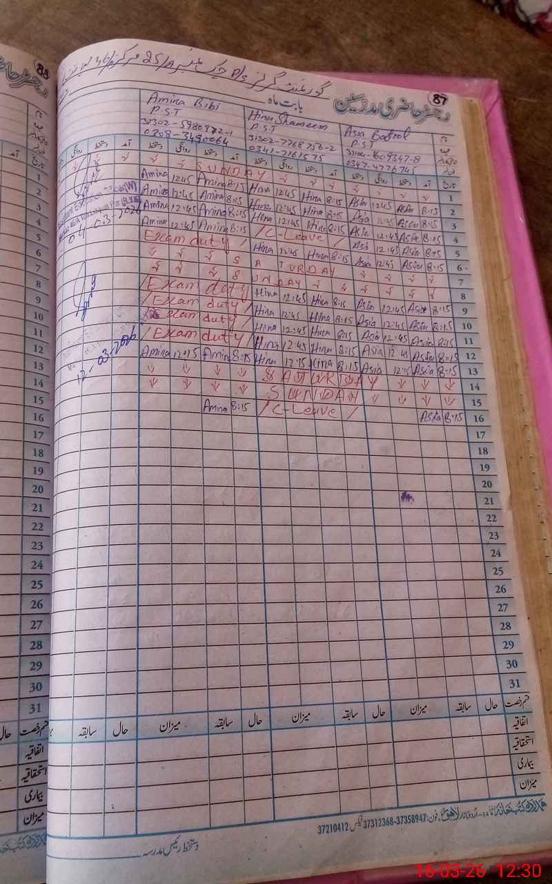 | Name: AS**** BA**** Designation: (School Headmaster's/Headmistress's) PST Phone/Cell Number: 03**** |