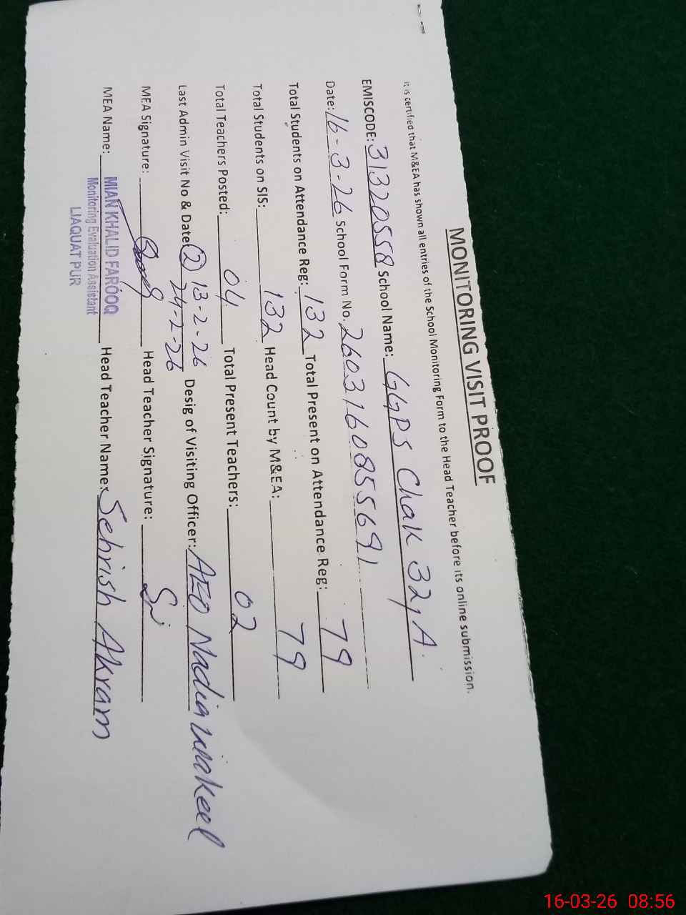 | EMIS Code: 31320558 | Name of School: GGPS CHAK 32/A | |||
