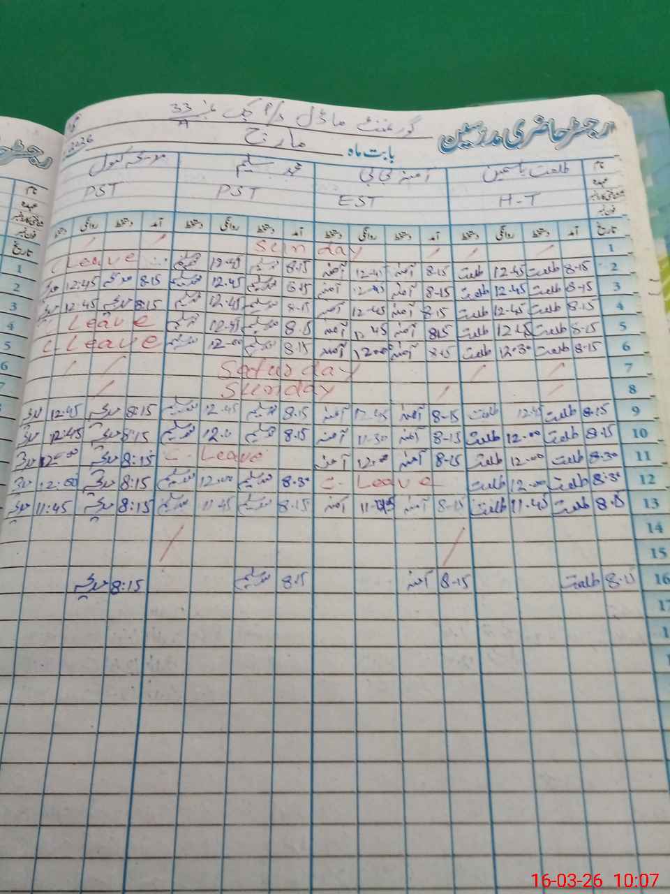 | Leave | Duty | Absent | Maternity | Medical | Ex- Pak |