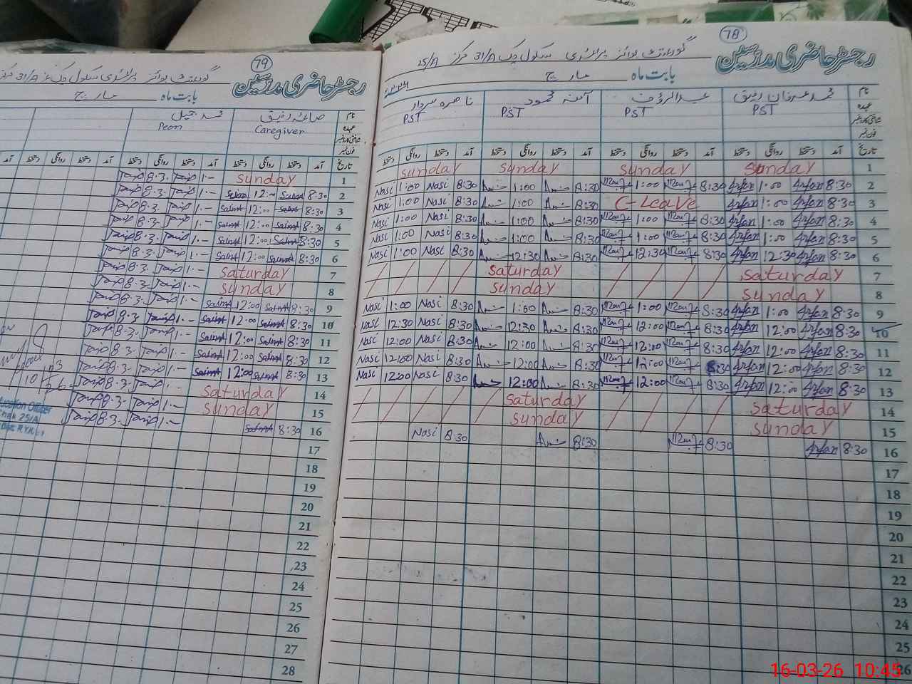 | Leave | Duty | Absent | Maternity | Medical | Ex- Pak |