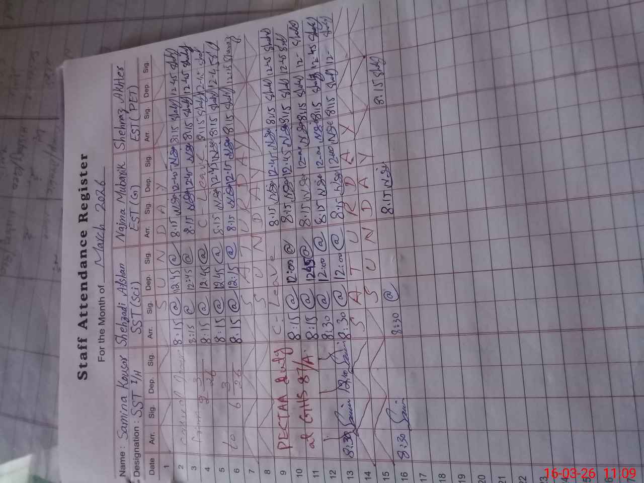 | CNIC | Full Name | Designation | R/C | Absence During Last Calender Month |