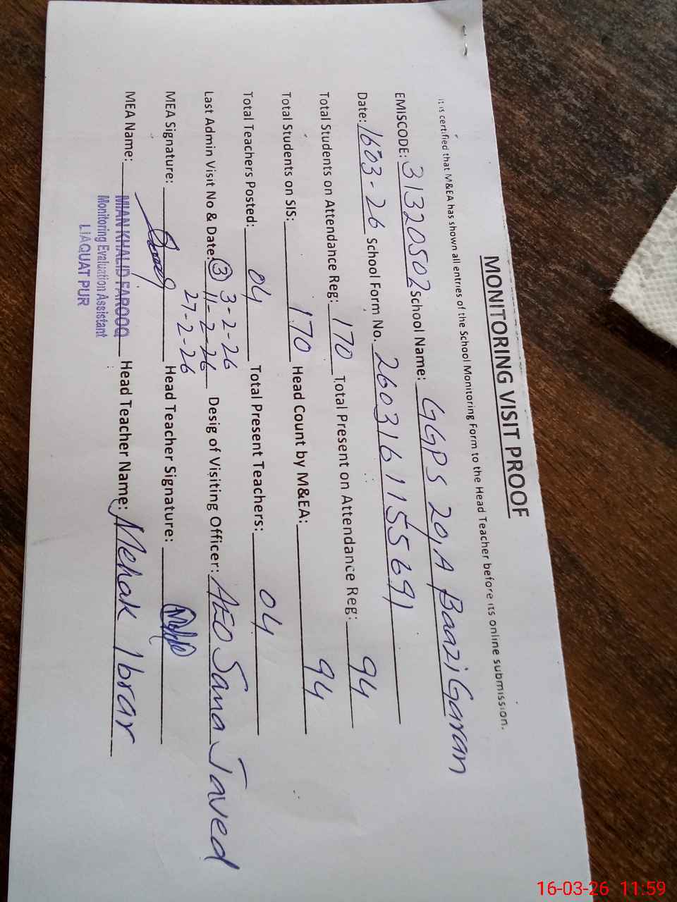 | EMIS Code: 31320502 | Name of School: GGPS 20/A BAAZI GARAAN | |||