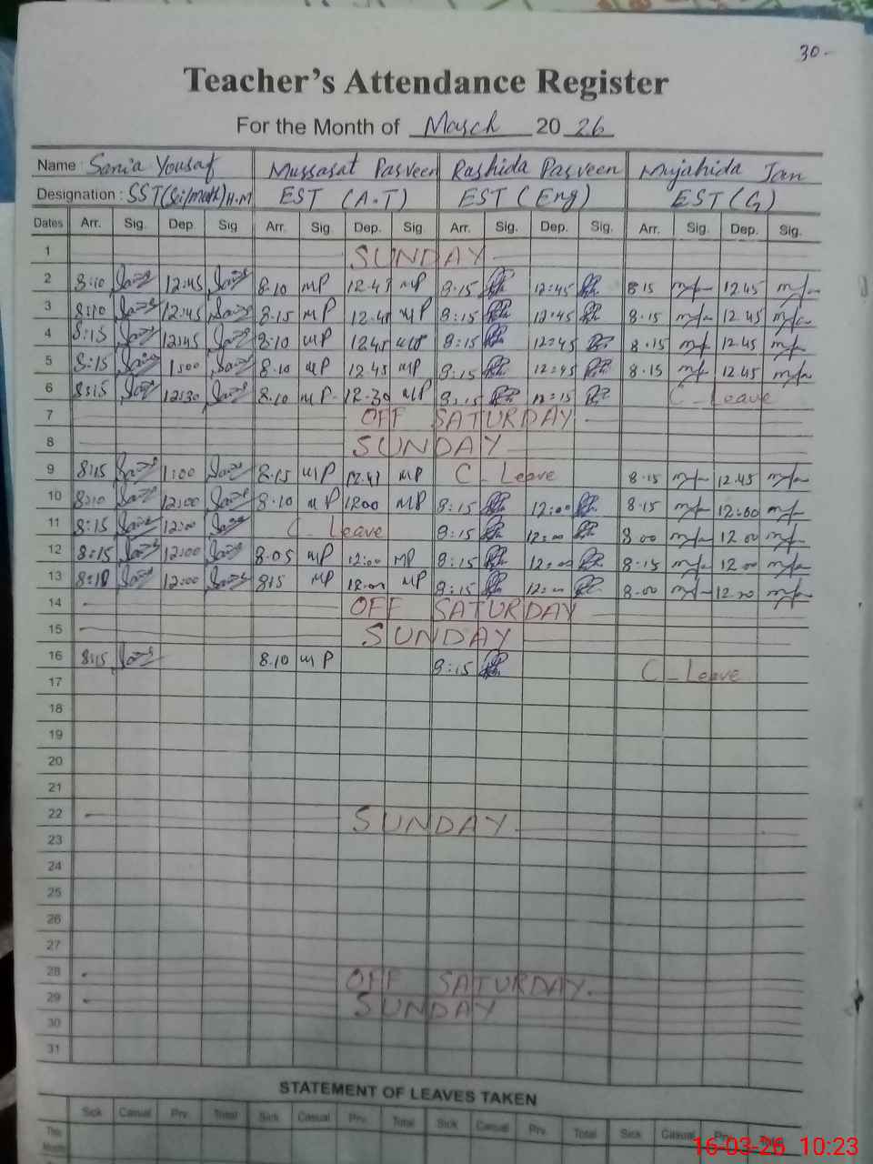 | 37**** | Ay**** Mu**** | PST Science/Maths | Regular | 0 | 0 | 0 | 0 | 0 | 0 | 0 | 0 | 0 | Casual |